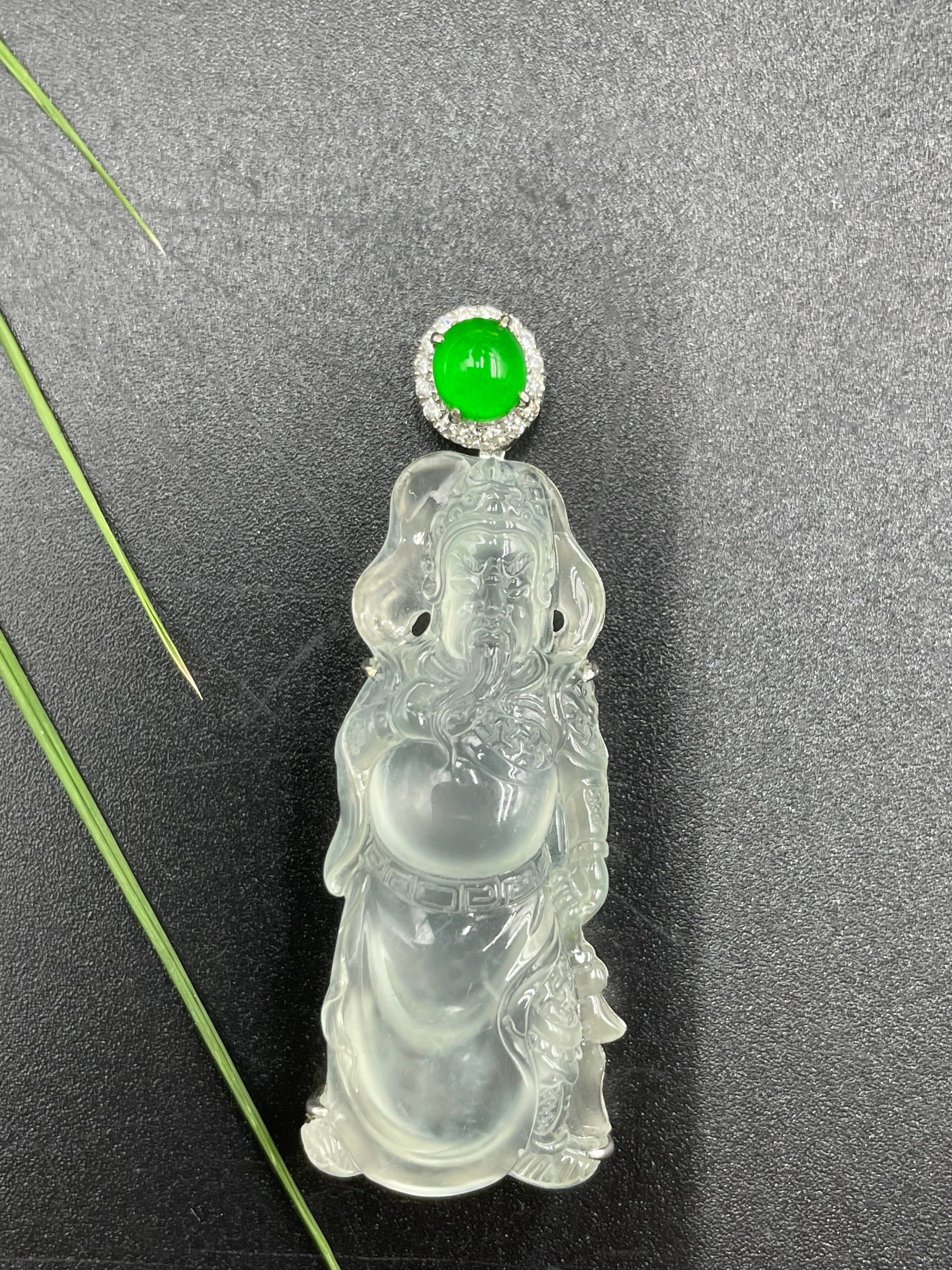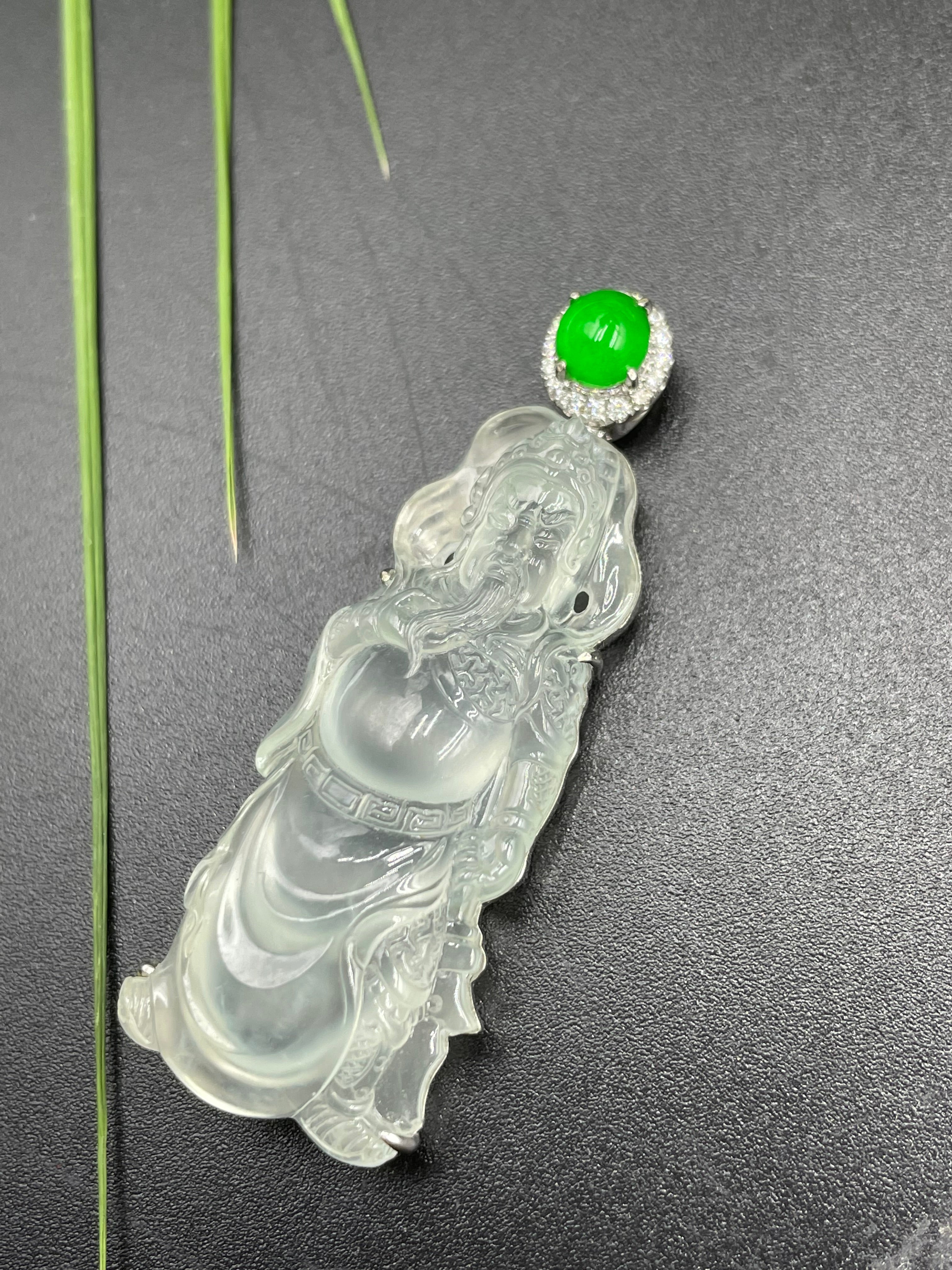 守護平安:關公被視爲守護神,其威武的形象能夠給人帶來安全感。佩戴關公翡翠吊墜,可以爲佩戴者本身和家人帶來平安和健康,在生活和工作中保駕護航,讓人們在麵對各種睏難和挑戰時感到安心。