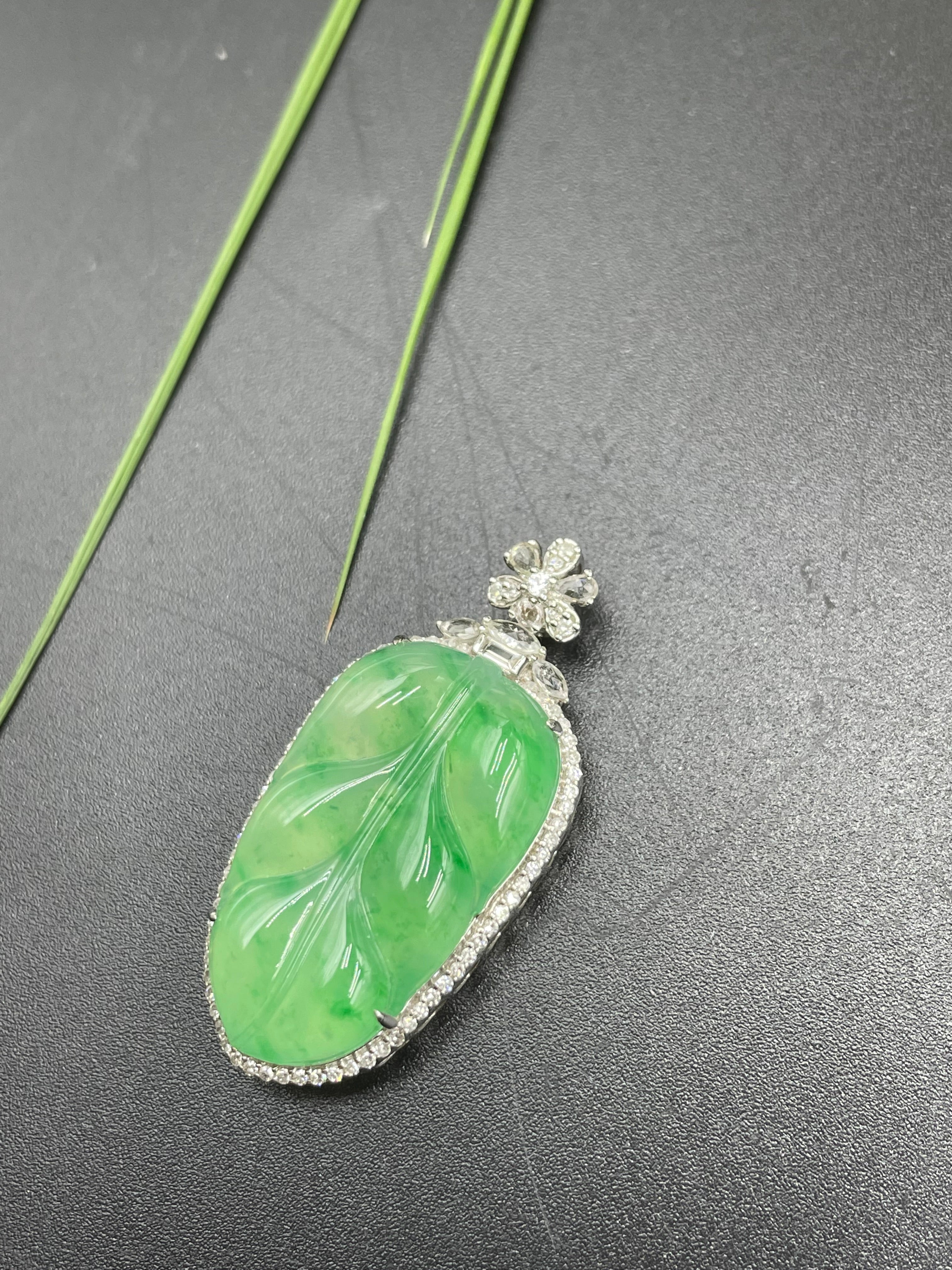 事業有成:“葉” 諧音 “業”,樹葉繁茂、枝葉繁盛的形象,讓人聯想到事業蒸蒸日上。許多人在求職或昇職之際會選擇佩戴翡翠葉子掛件,期待能夠獲得好運加持,實現自己的職業目標。