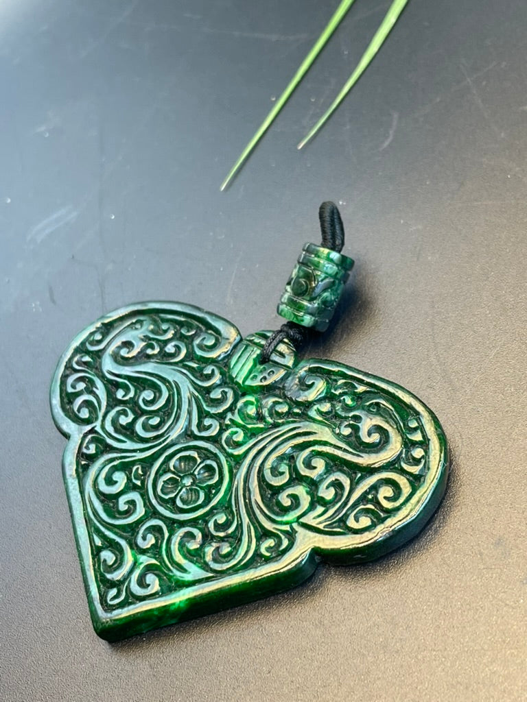 • 天然緬甸翡翠辣綠仿古牌吊墜
