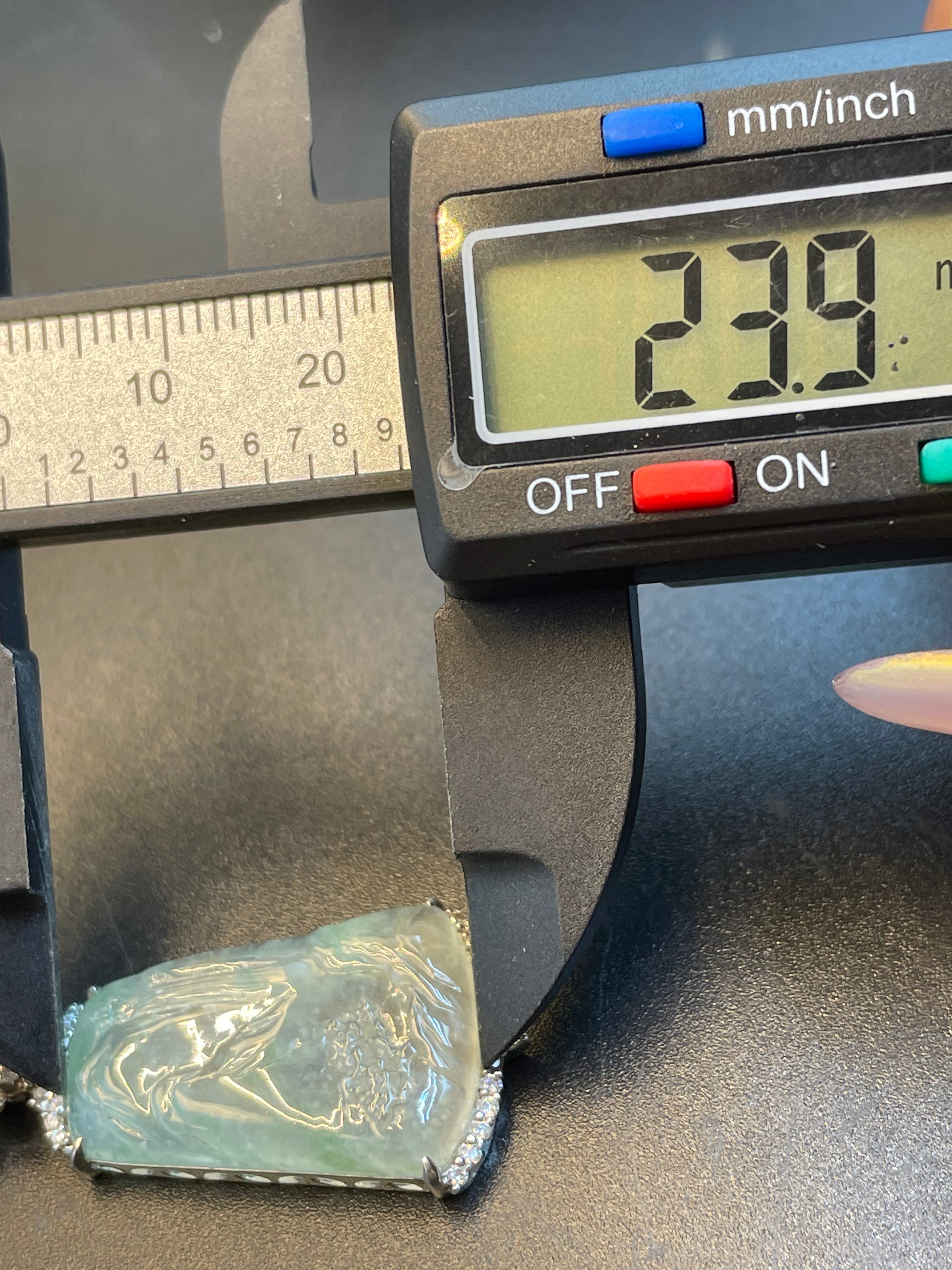 • 天然翡翠冰種山水意境玉牌吊墜