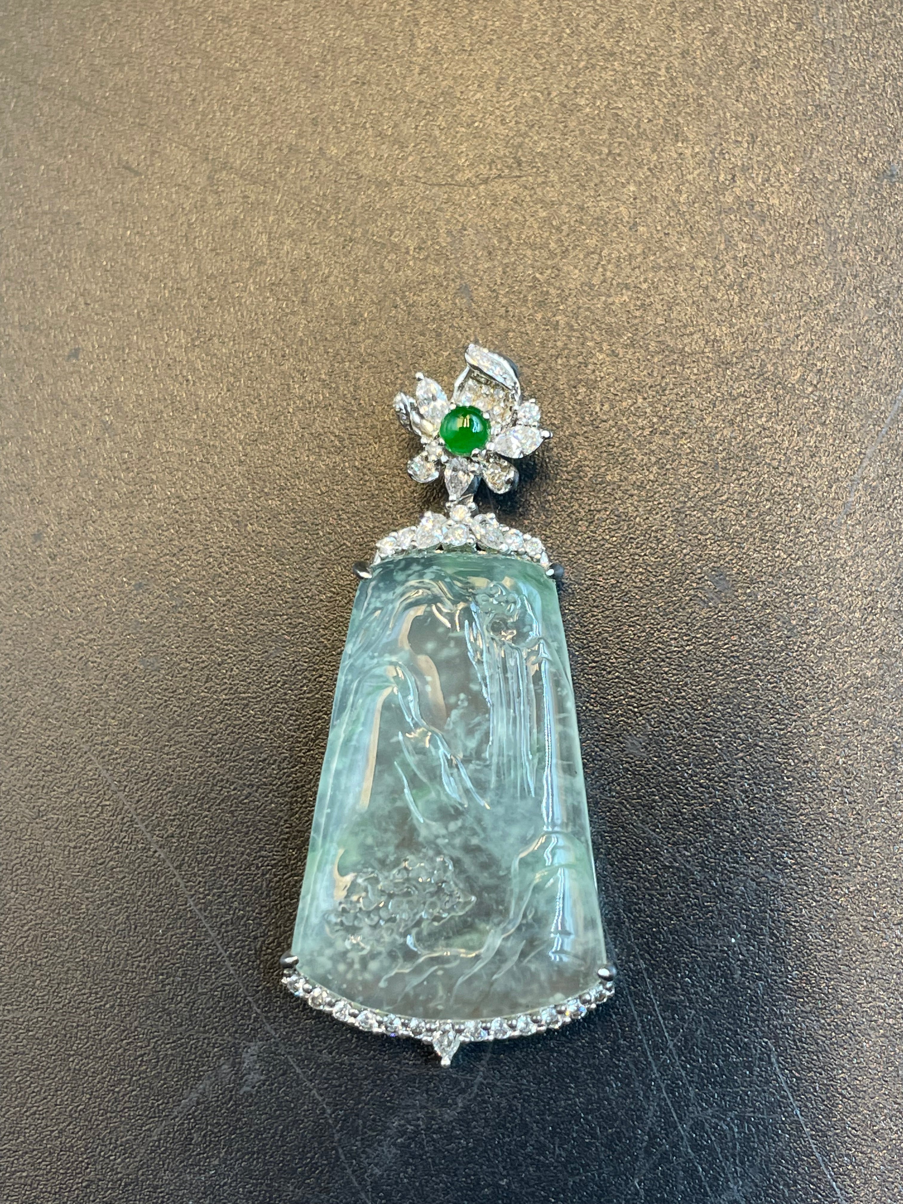 天然翡翠冰種山水意境玉牌吊墜 天然翡翠冰種山水意境玉牌吊墜