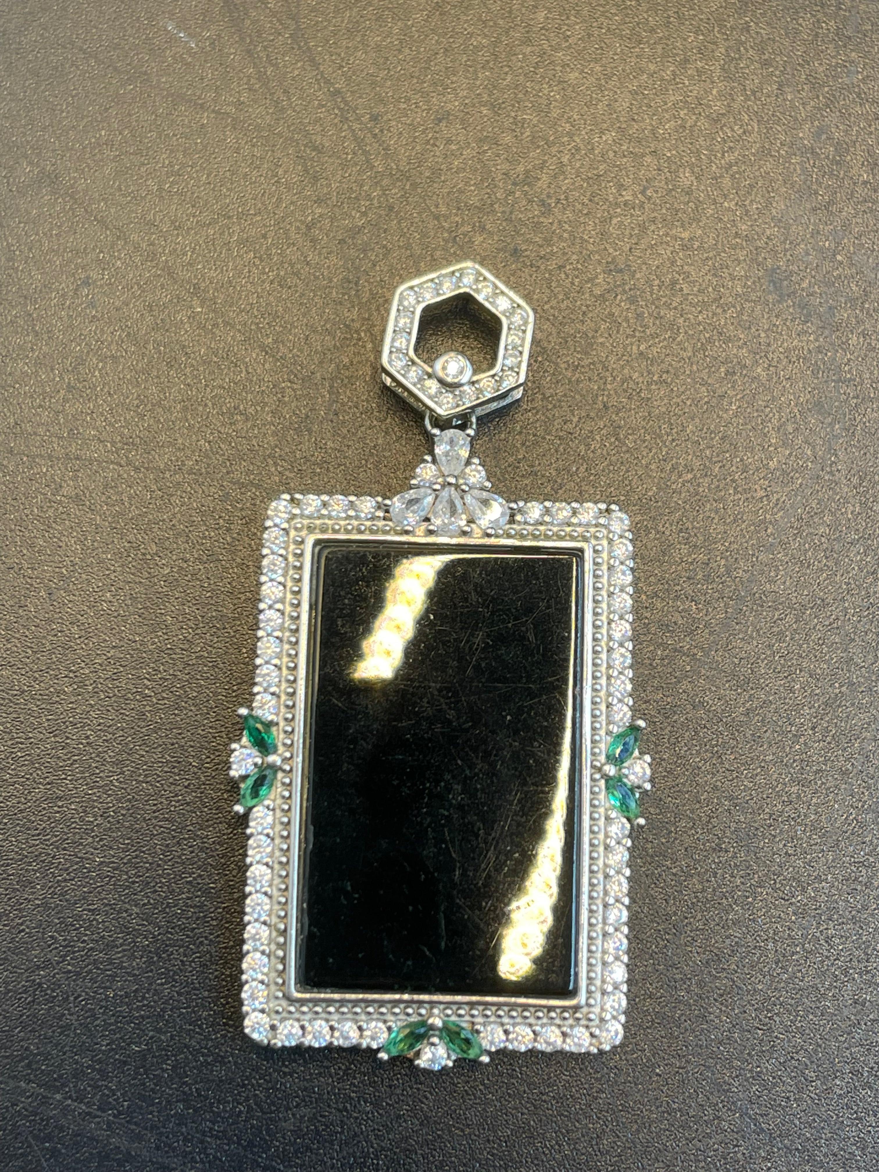 天然翡翠无事牌墨翠吊墜 天然翡翠无事牌墨翠吊墜