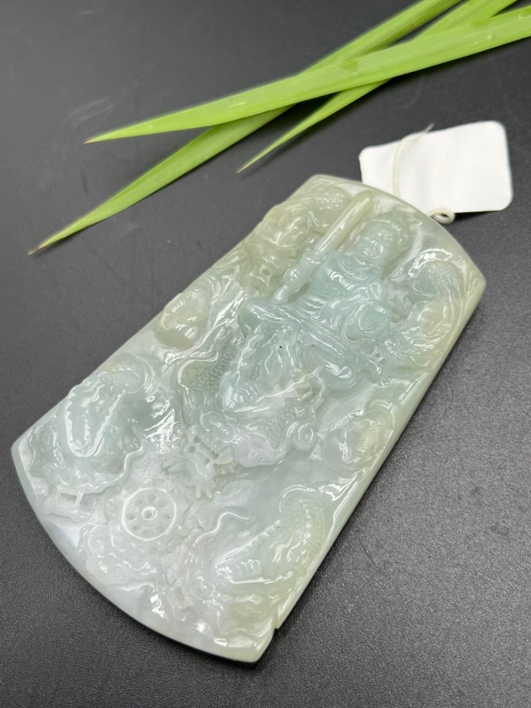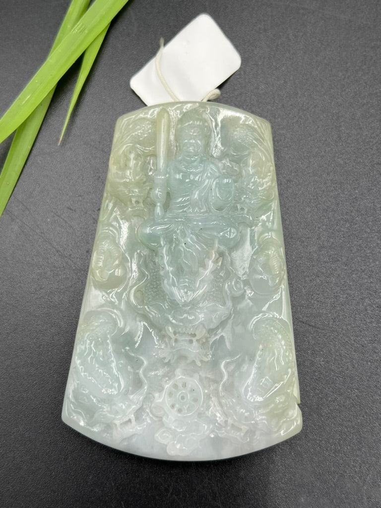 • 緬甸天然翡翠九龍降魔吊墜
