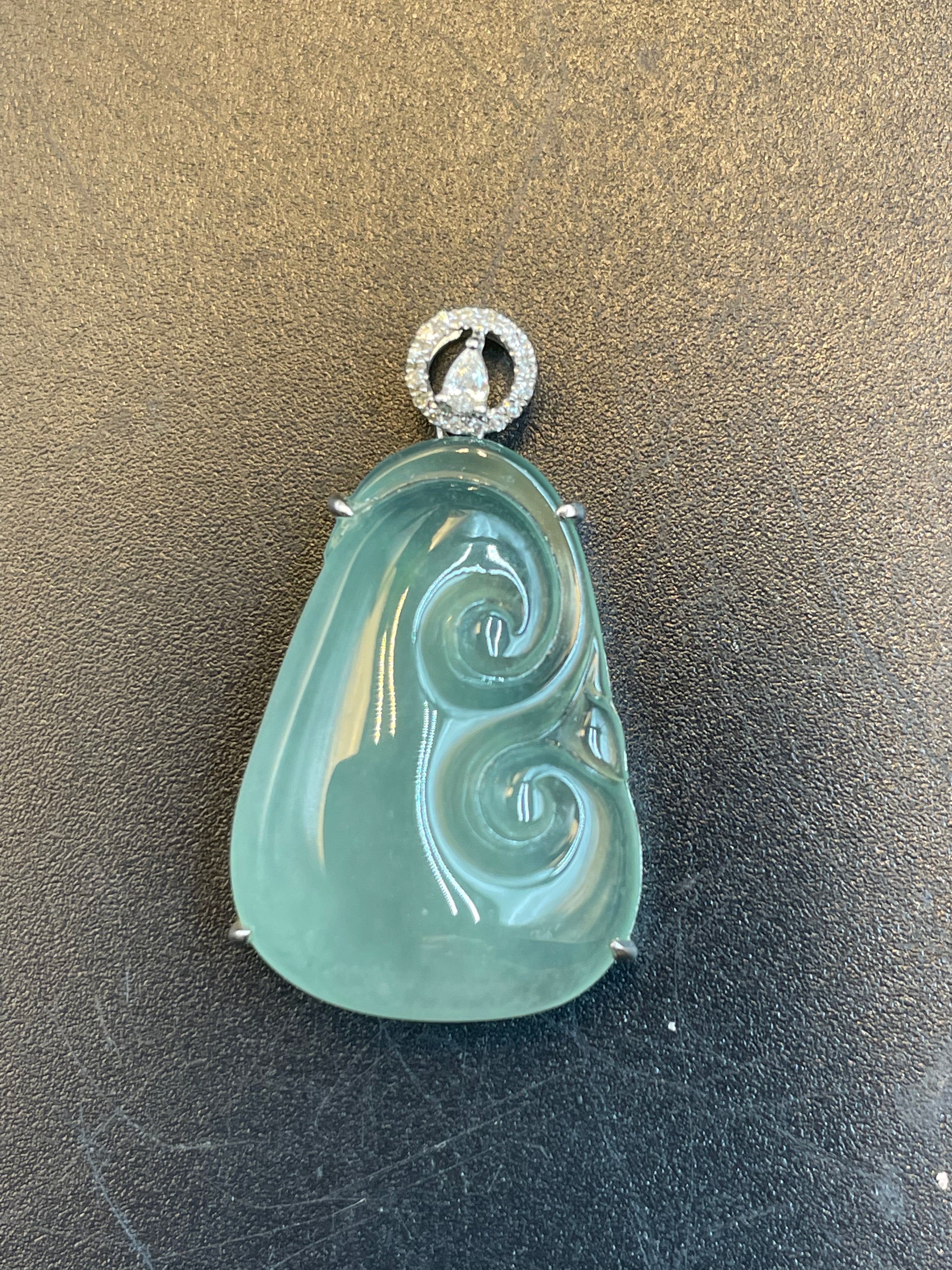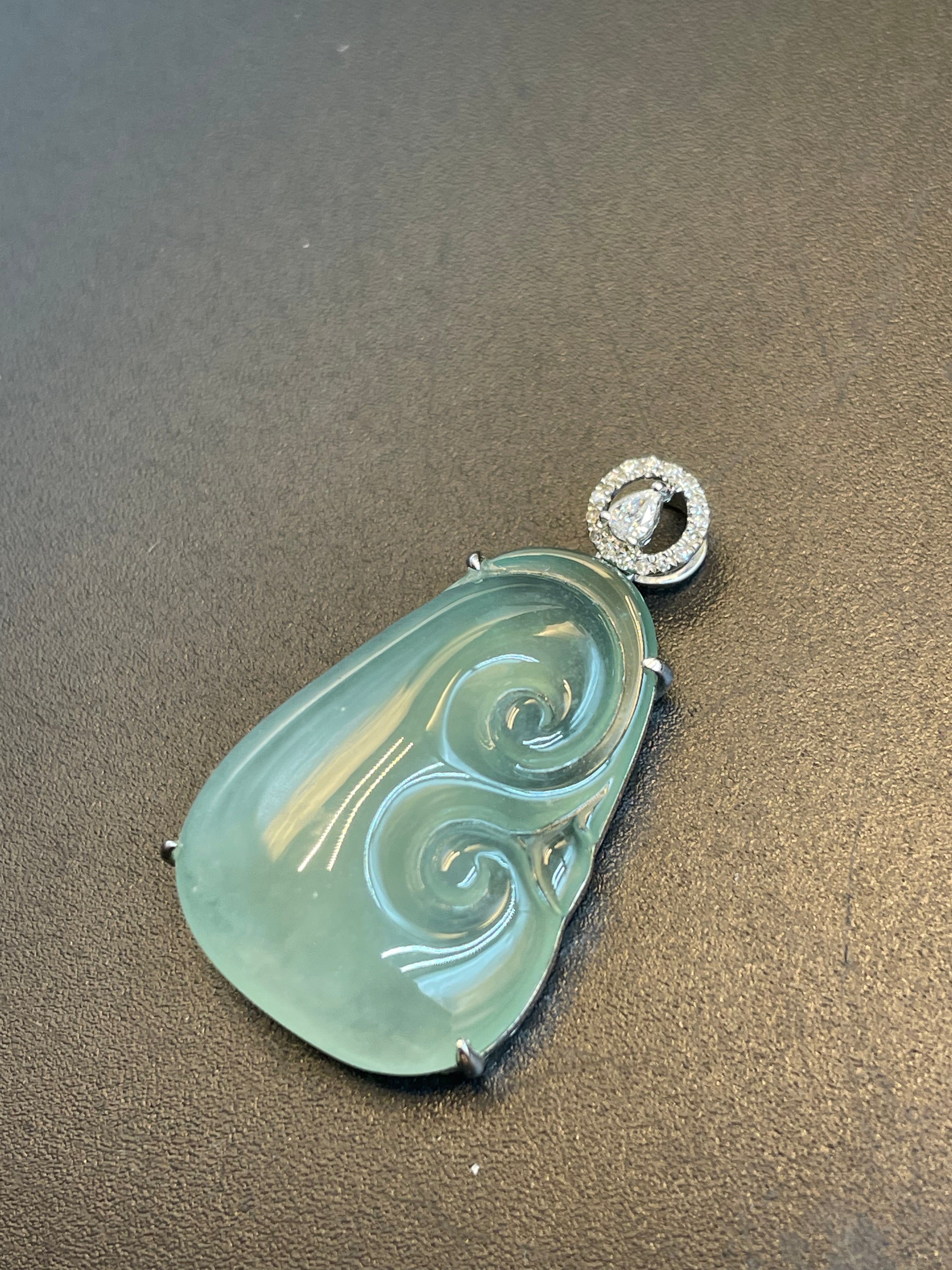 緬甸天然翡翠冰綠如意吊墜 緬甸天然翡翠冰綠如意吊墜