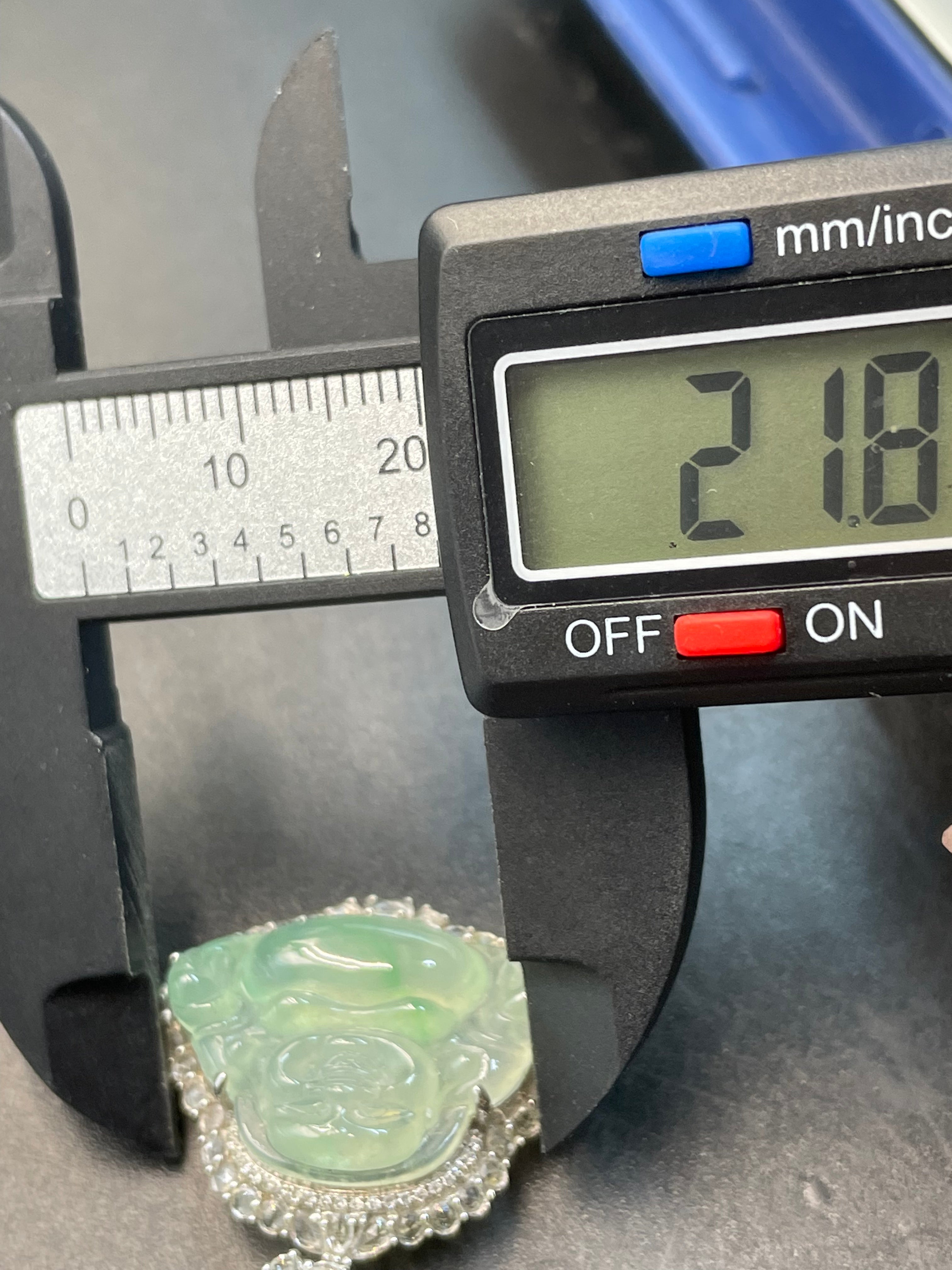 緬甸天然翡翠冰晴綠飄花彌勒吊墜 緬甸天然翡翠冰晴綠飄花彌勒吊墜