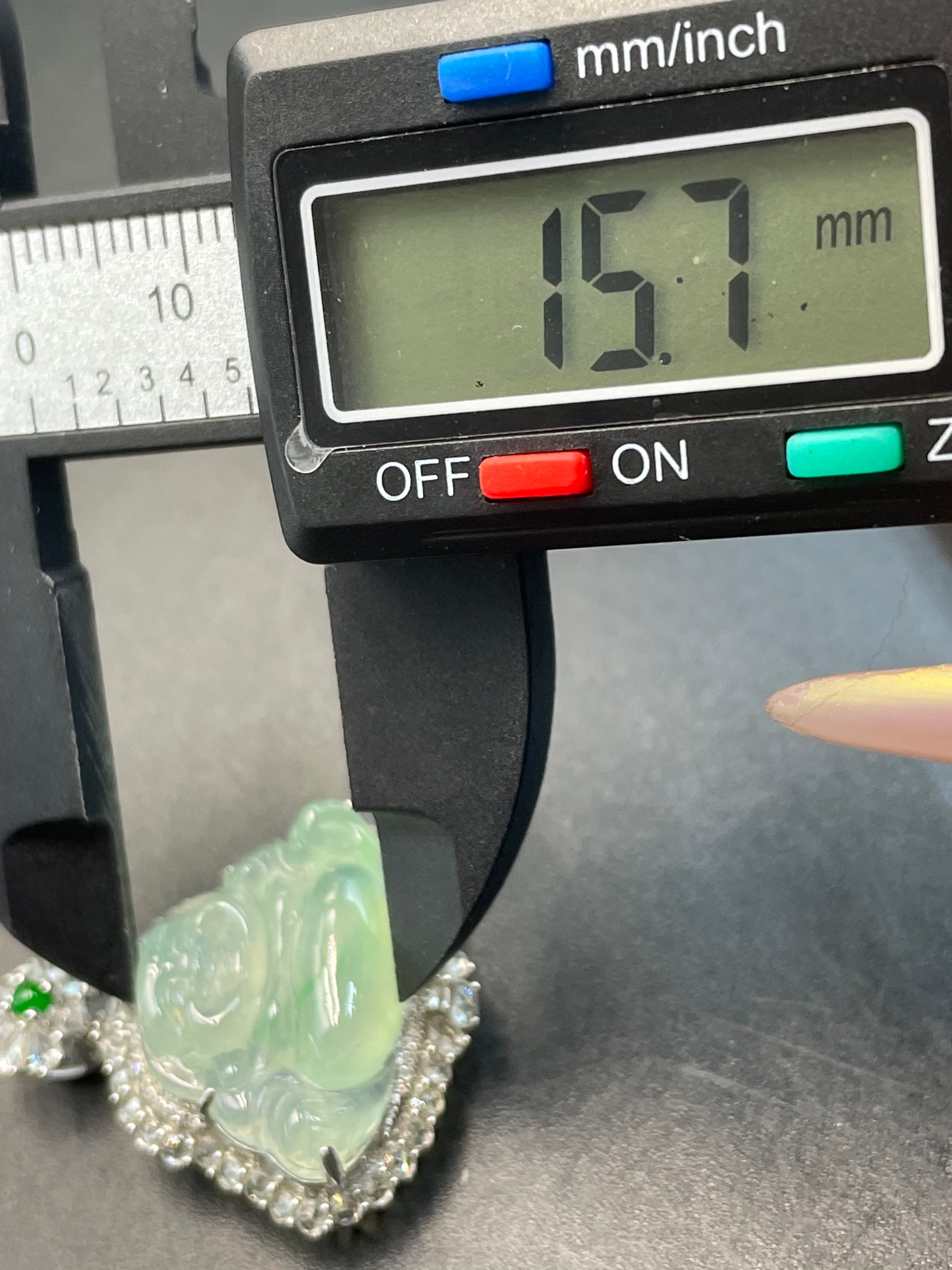 • 緬甸天然翡翠冰晴綠飄花彌勒吊墜