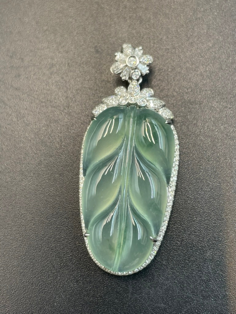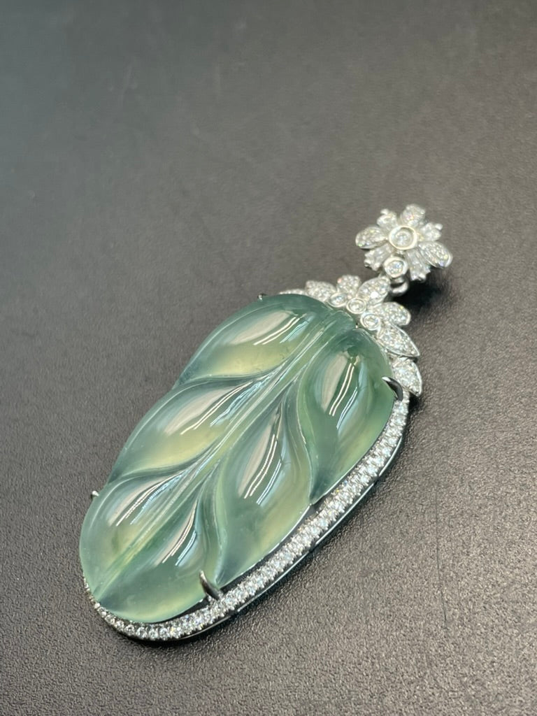 • 緬甸天然翡翠冰晴葉子/金枝玉葉吊墜