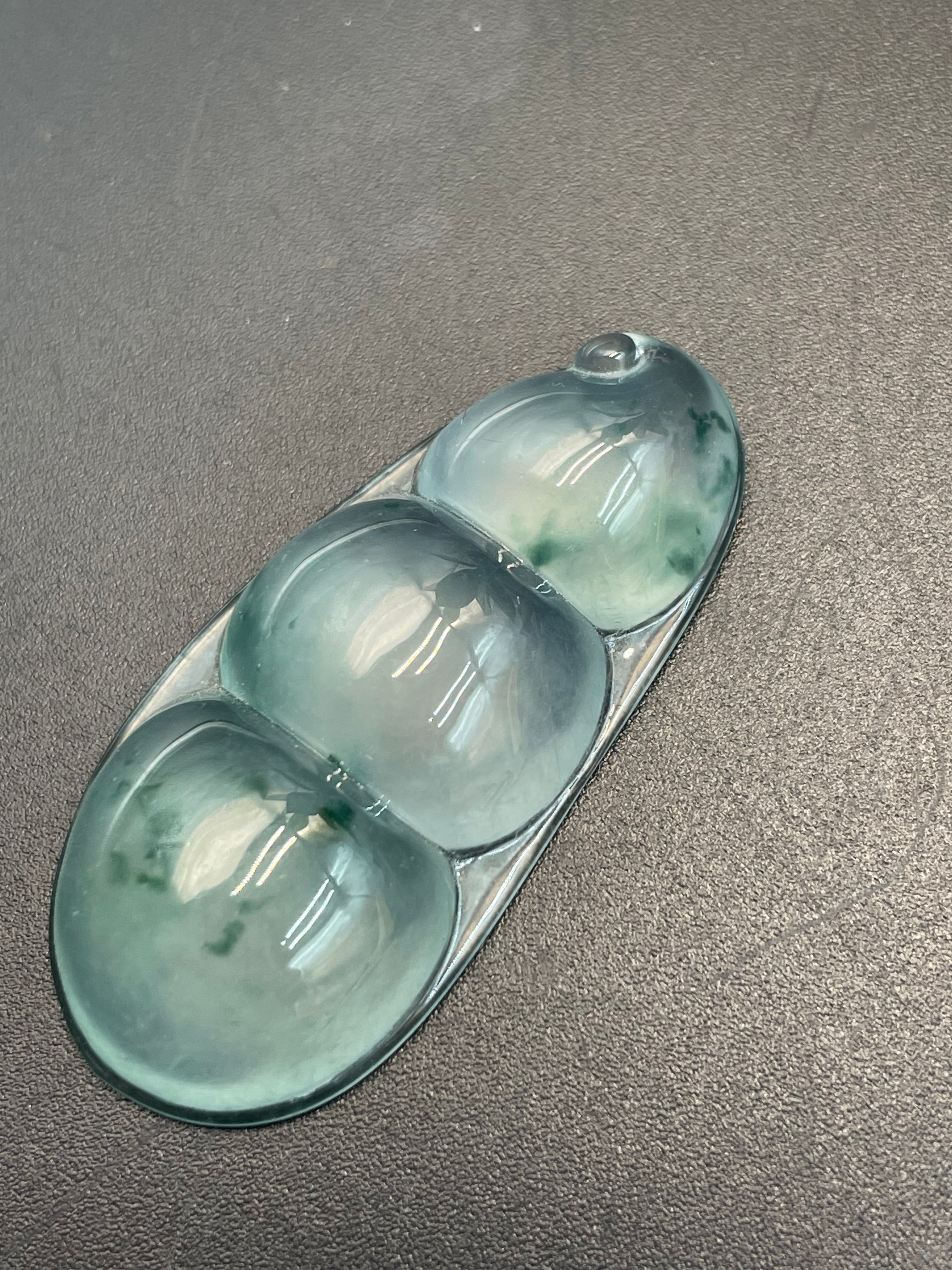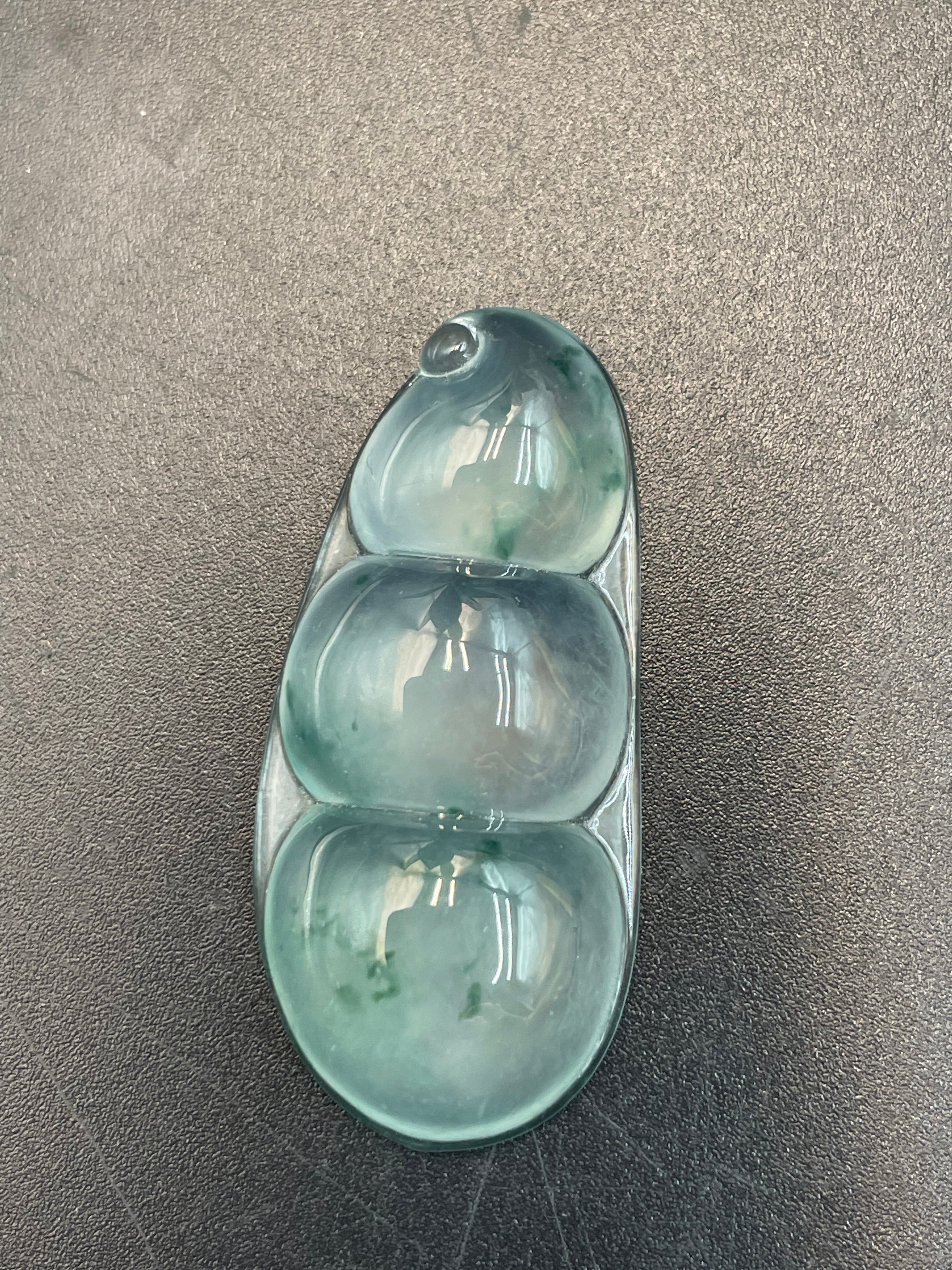 緬甸天然翡翠冰晴飄綠花福豆/三元及第吊墜 緬甸天然翡翠冰晴飄綠花福豆/三元及第吊墜