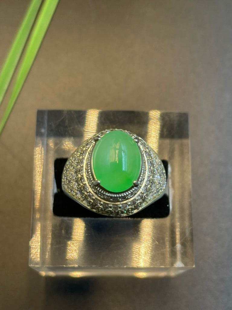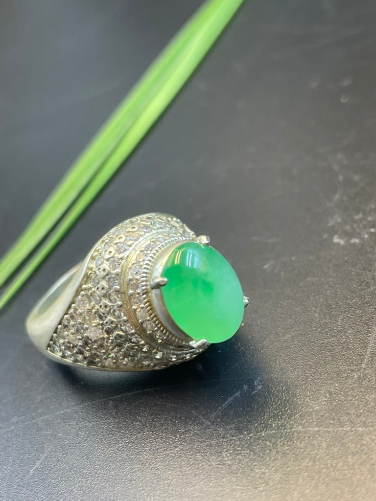 • 緬甸天然翡翠冰果綠蛋面戒指