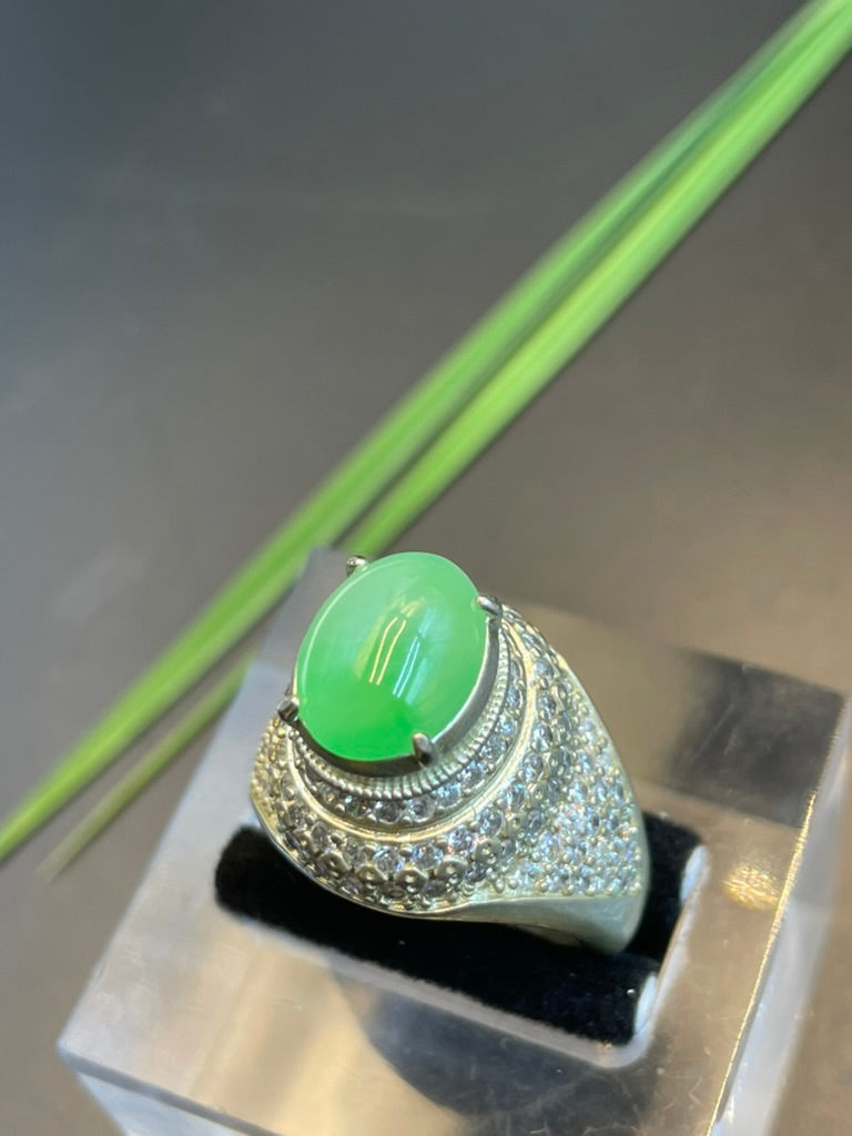 緬甸天然翡翠冰果綠蛋面戒指 緬甸天然翡翠冰果綠蛋面戒指