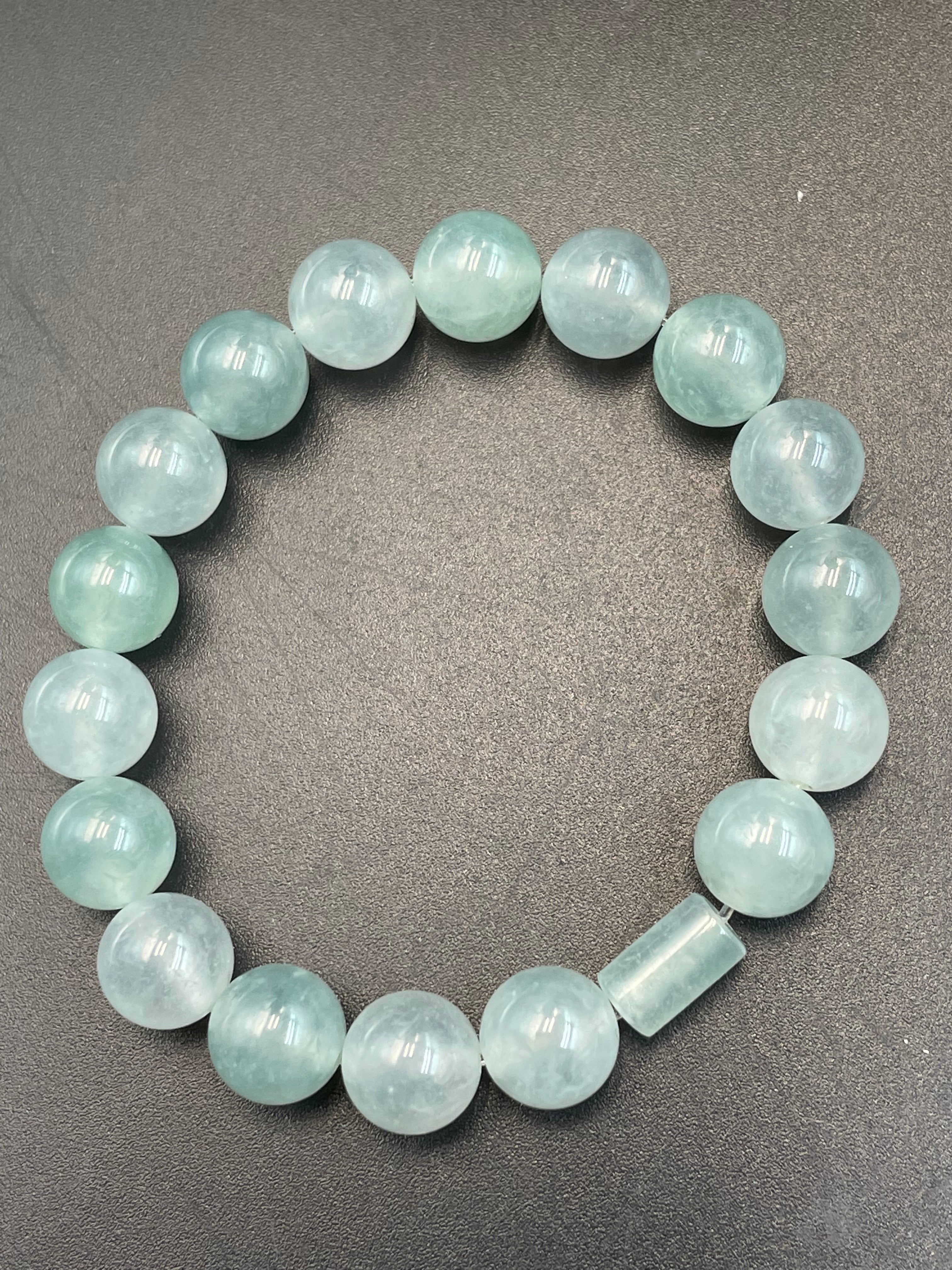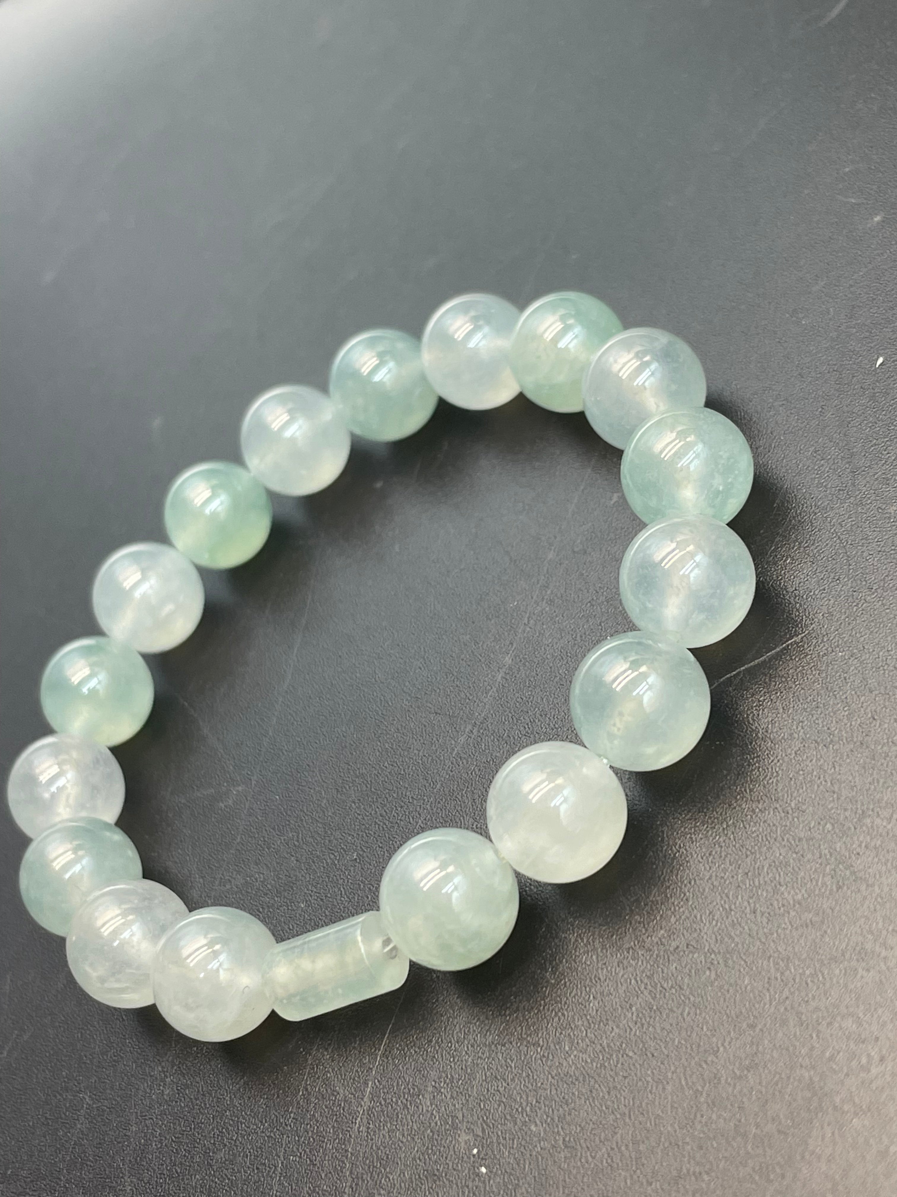 • 緬甸天然翡翠冰種冰藍圆珠路路通手串手链