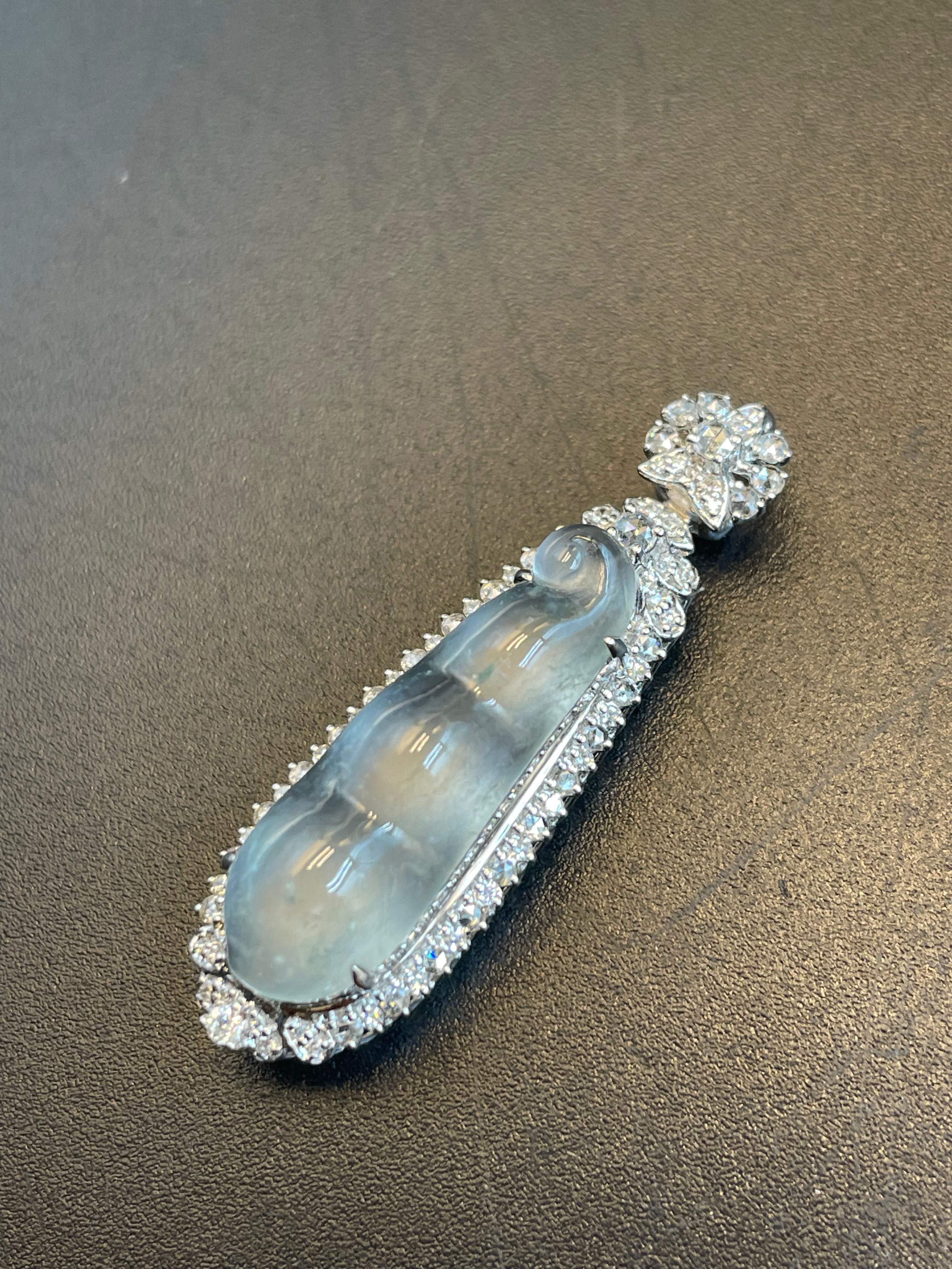 • 緬甸天然翡翠冰種福豆/三元及第吊墜