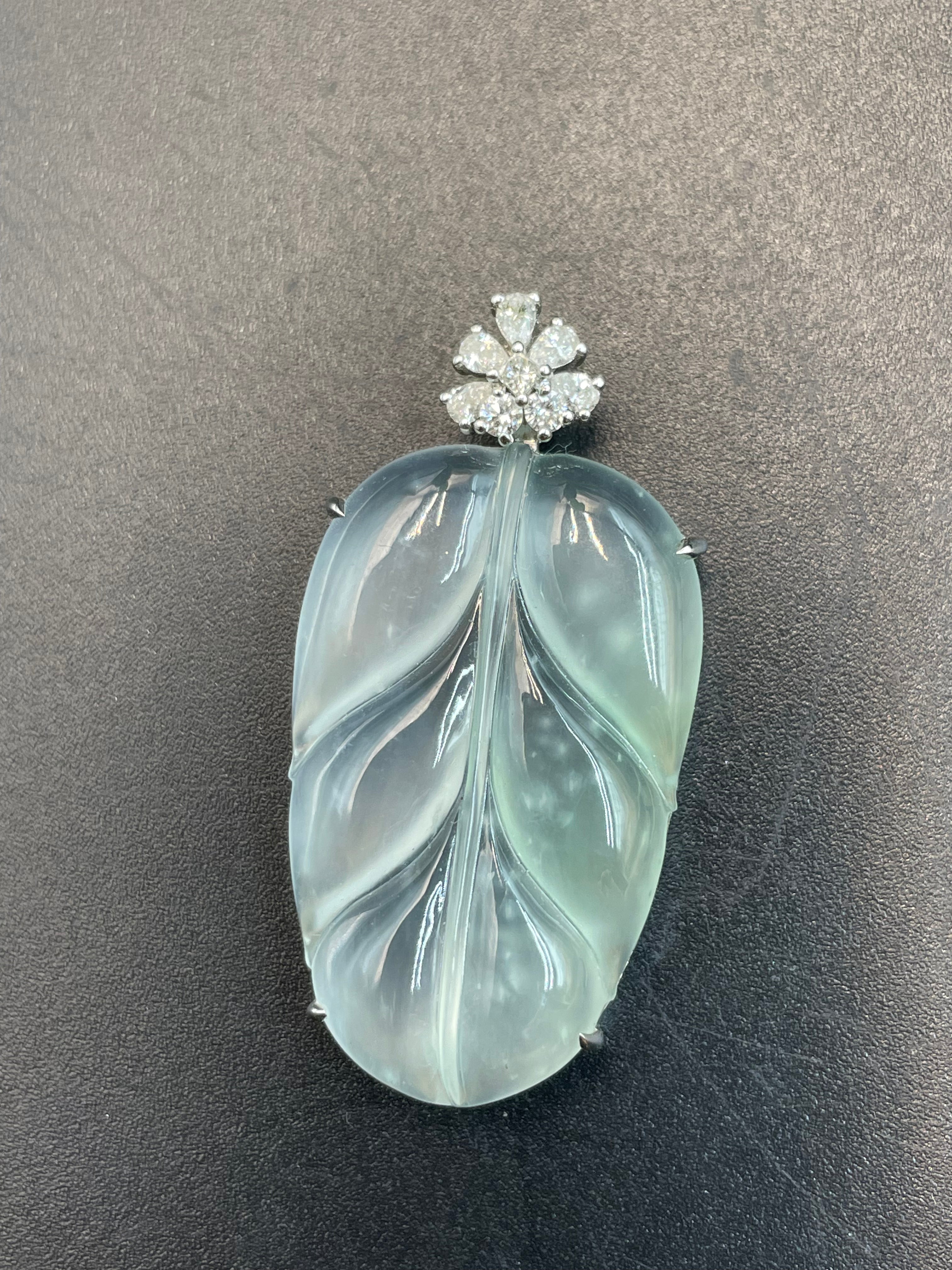 • 緬甸天然翡翠冰種葉子/金枝玉葉吊墜