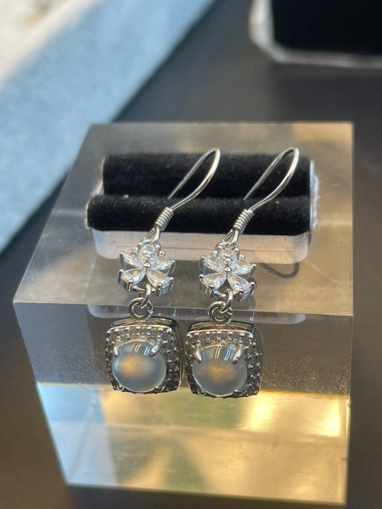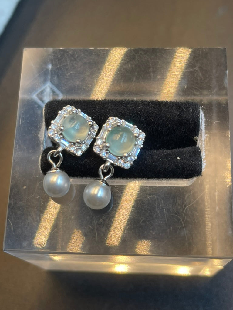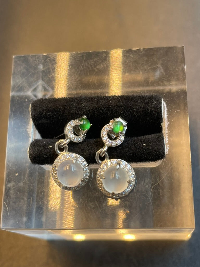 • 緬甸天然翡翠冰種蛋面耳環耳釘耳墜/禮物/簡約