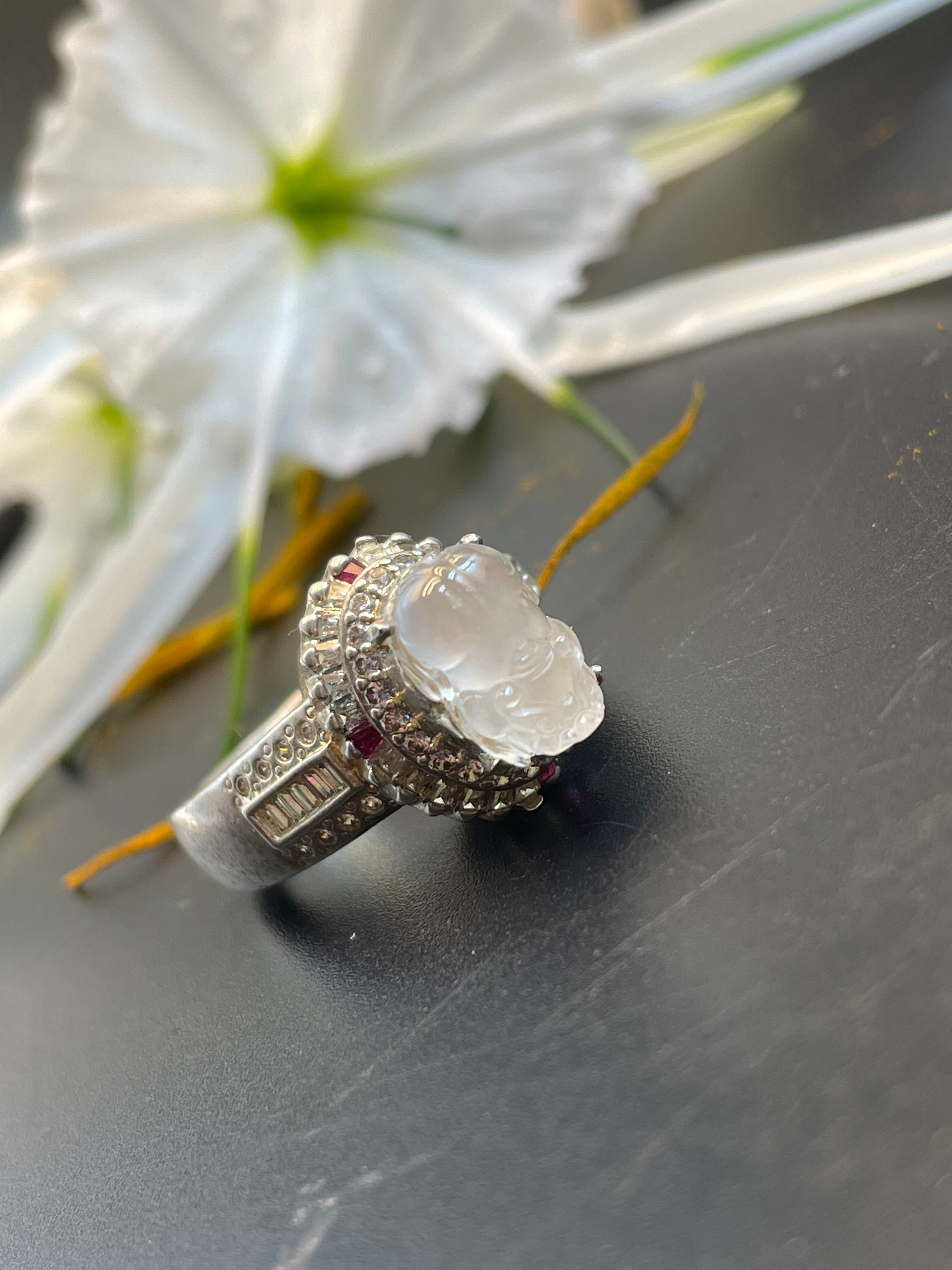 緬甸天然翡翠冰種蛋麵戒指