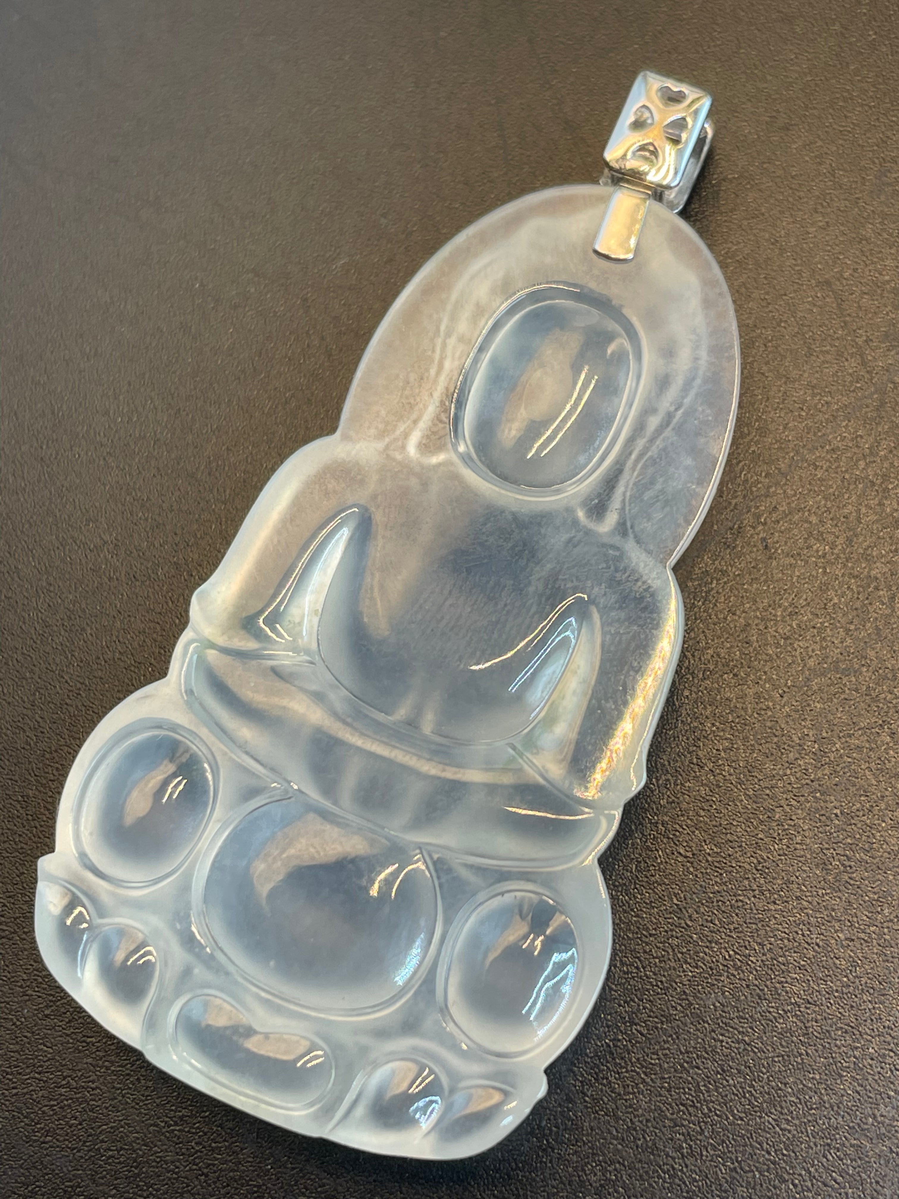 • 緬甸天然翡翠冰種大觀音吊墜