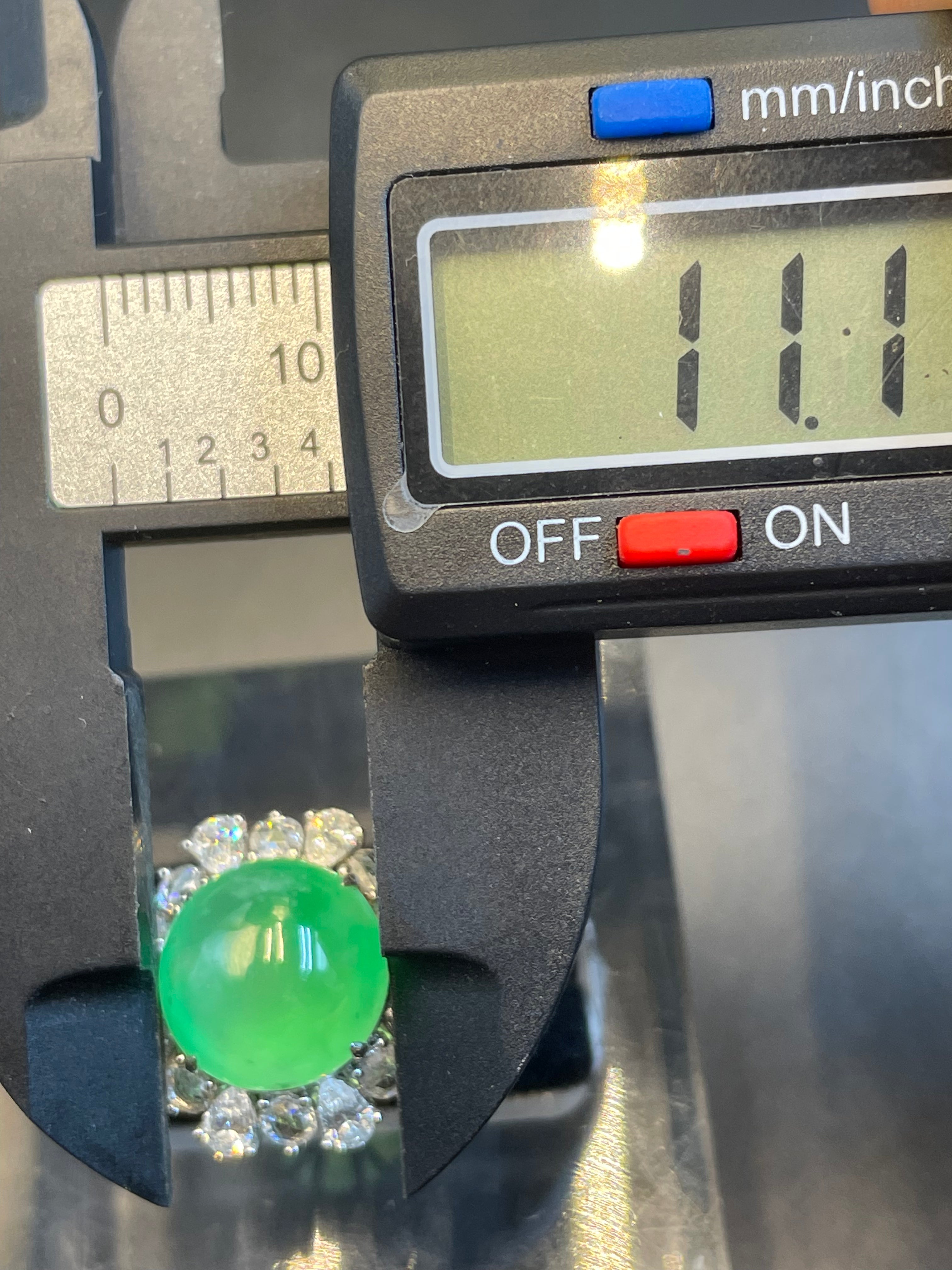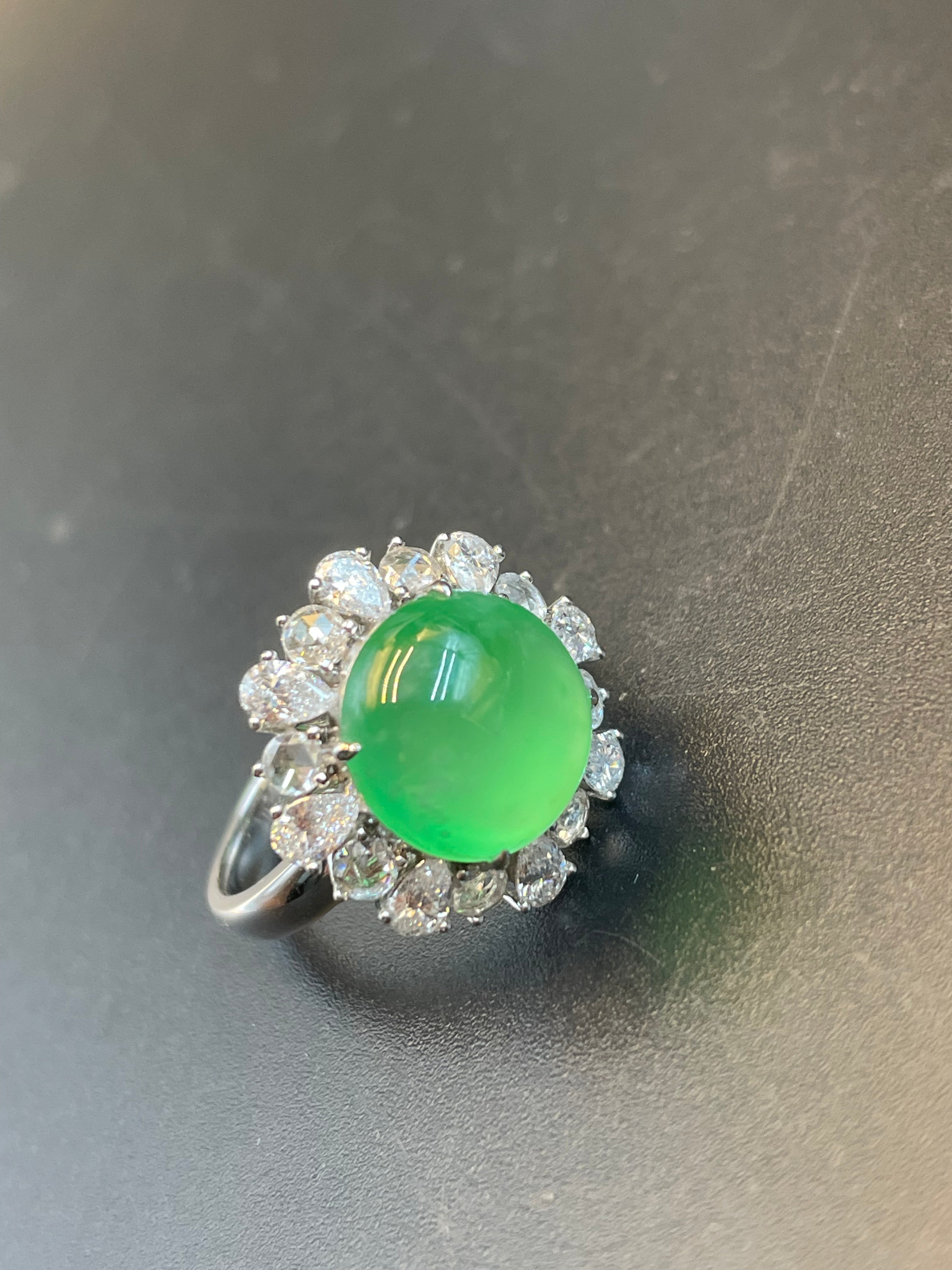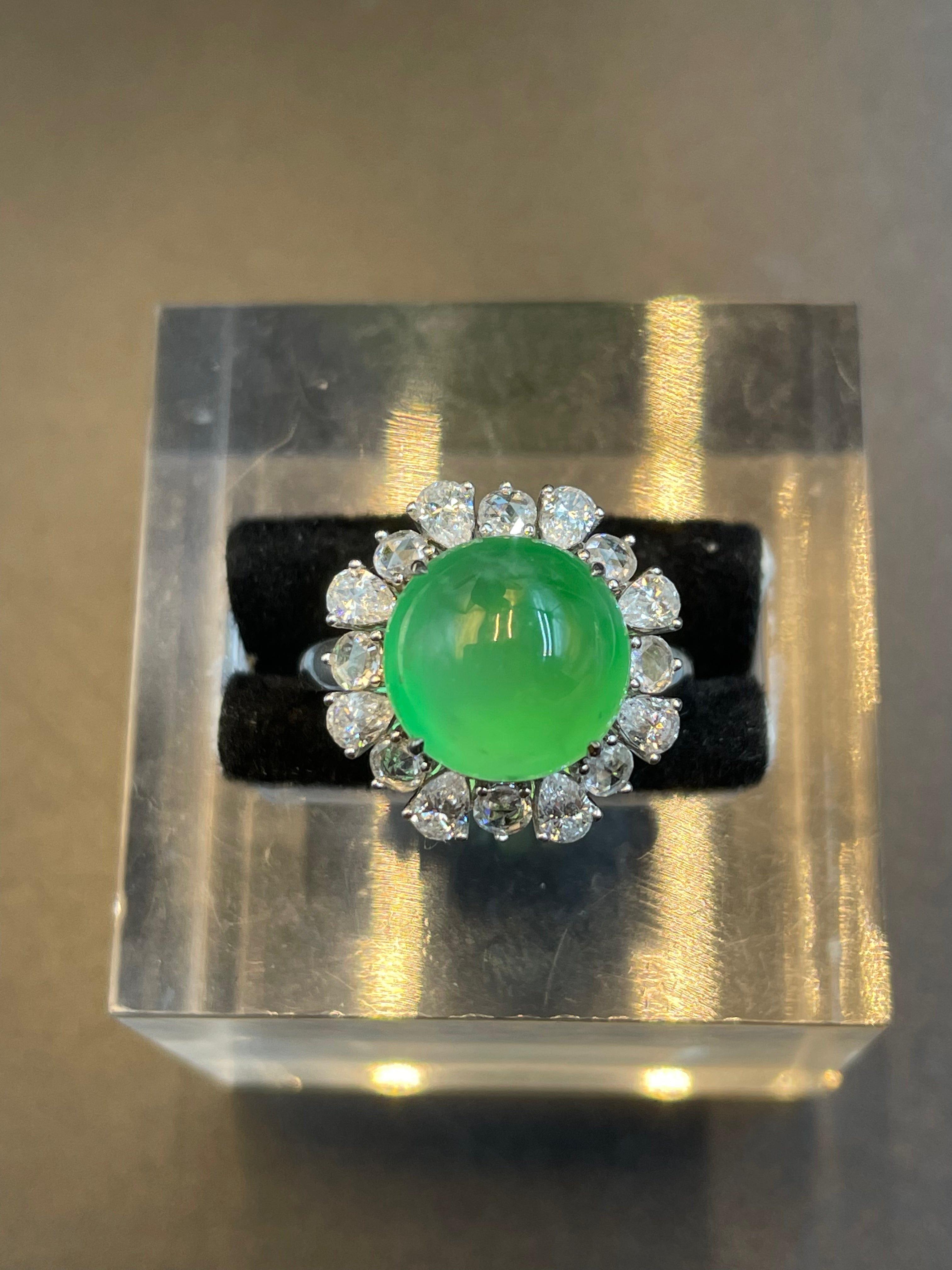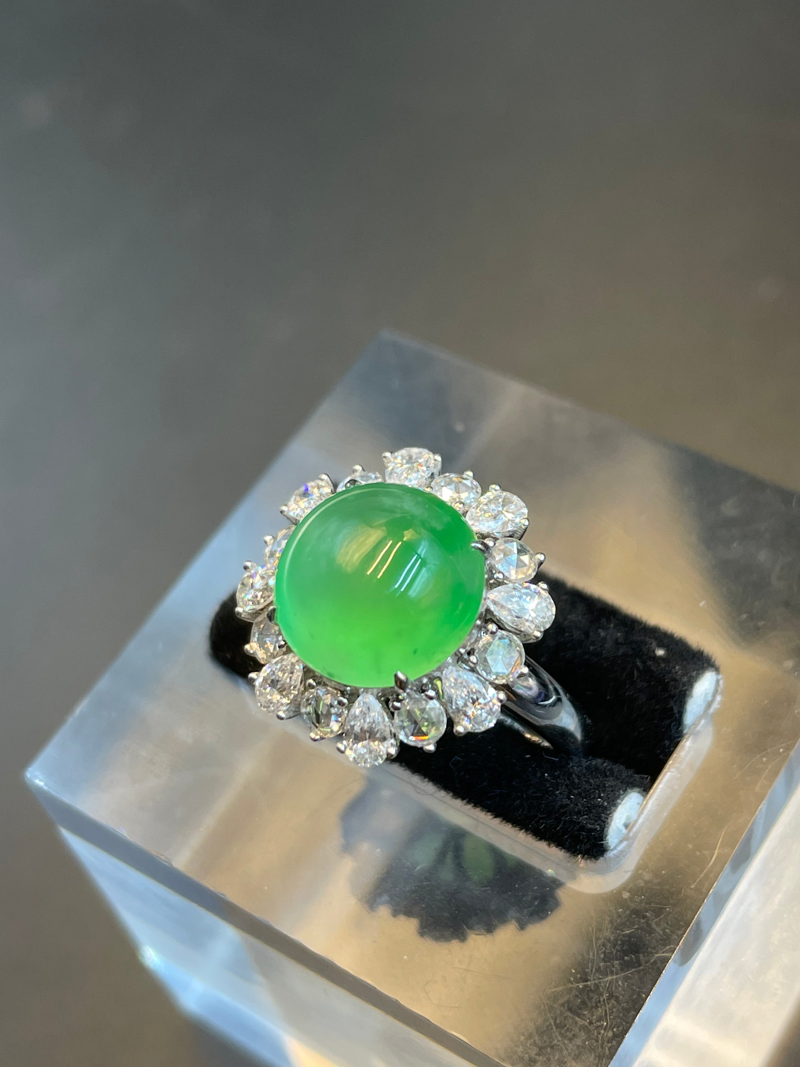 • 緬甸天然翡翠冰種陽綠正圓蛋面戒指
