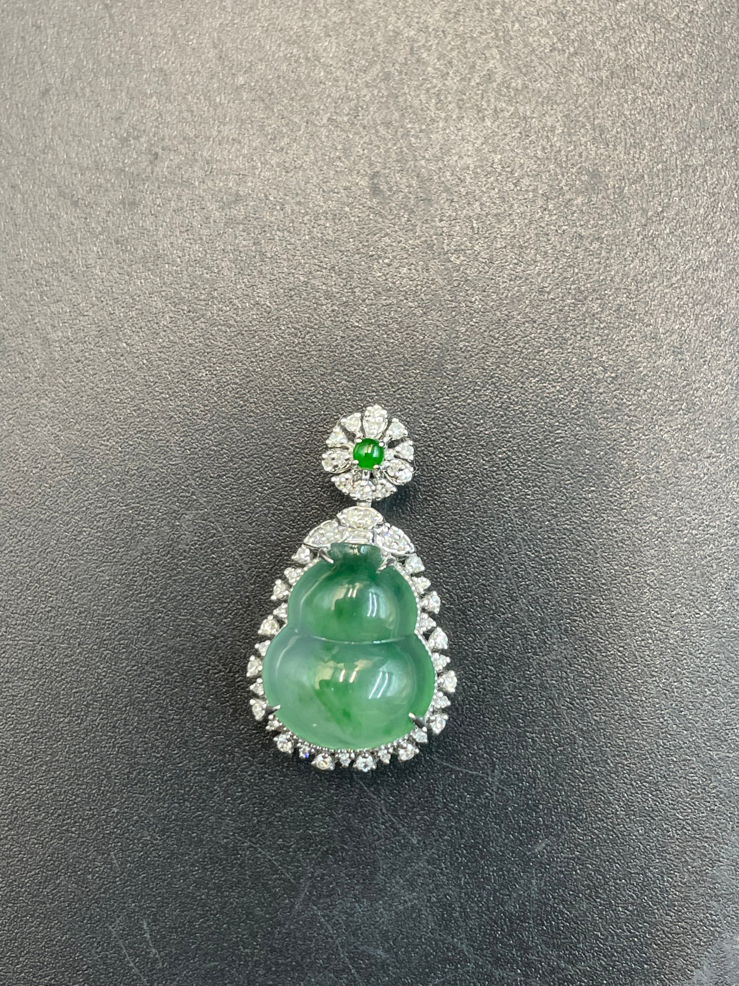 緬甸天然翡翠冰晴飄綠花福祿吊墜 緬甸天然翡翠冰晴飄綠花福祿吊墜