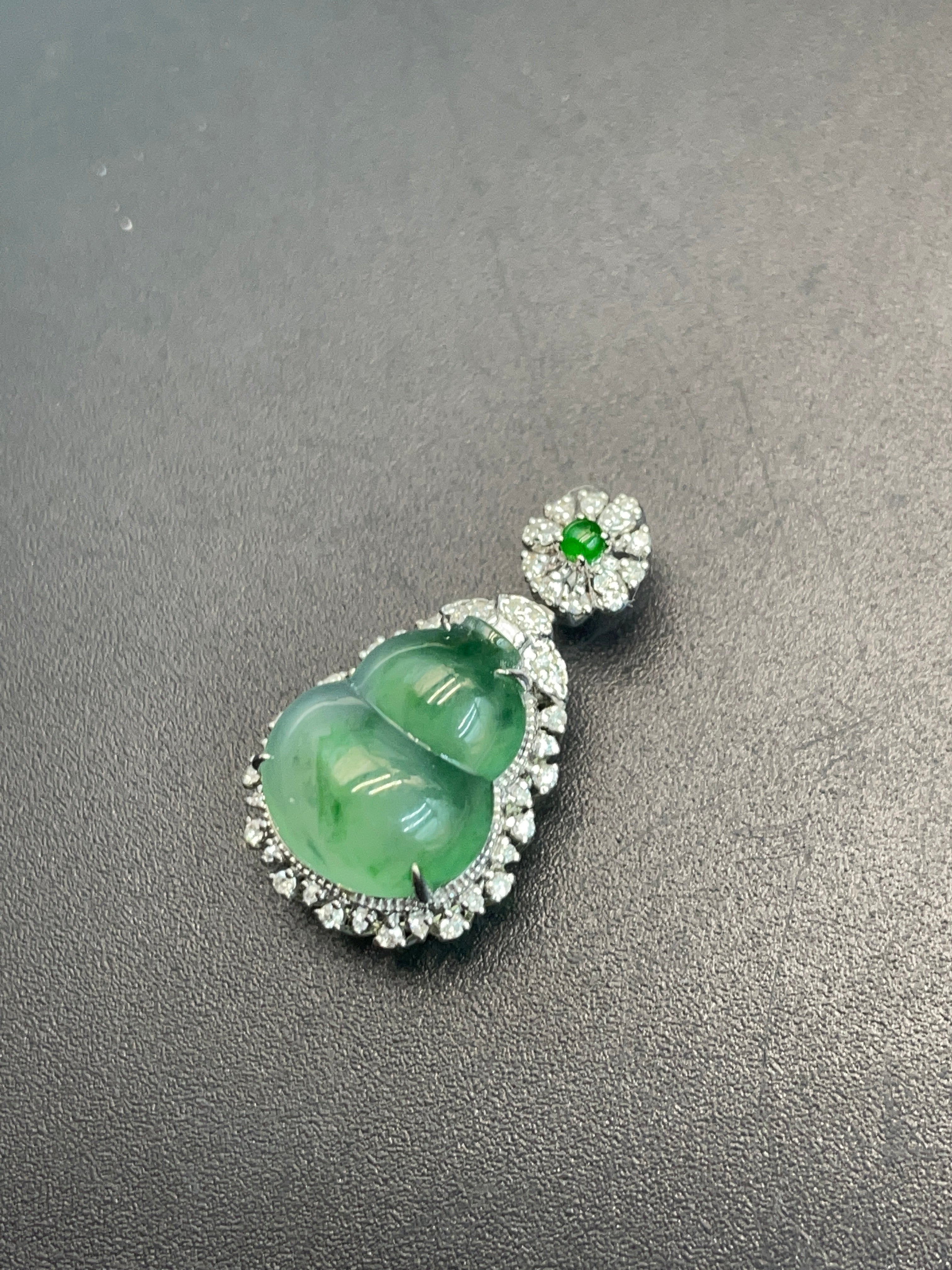 • 緬甸天然翡翠冰晴飄綠花福祿吊墜