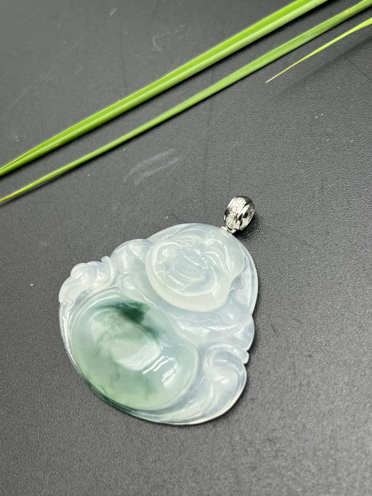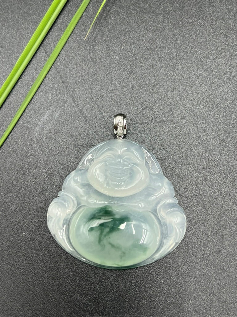 • 緬甸天然翡翠冰飄花彌勒吊墜