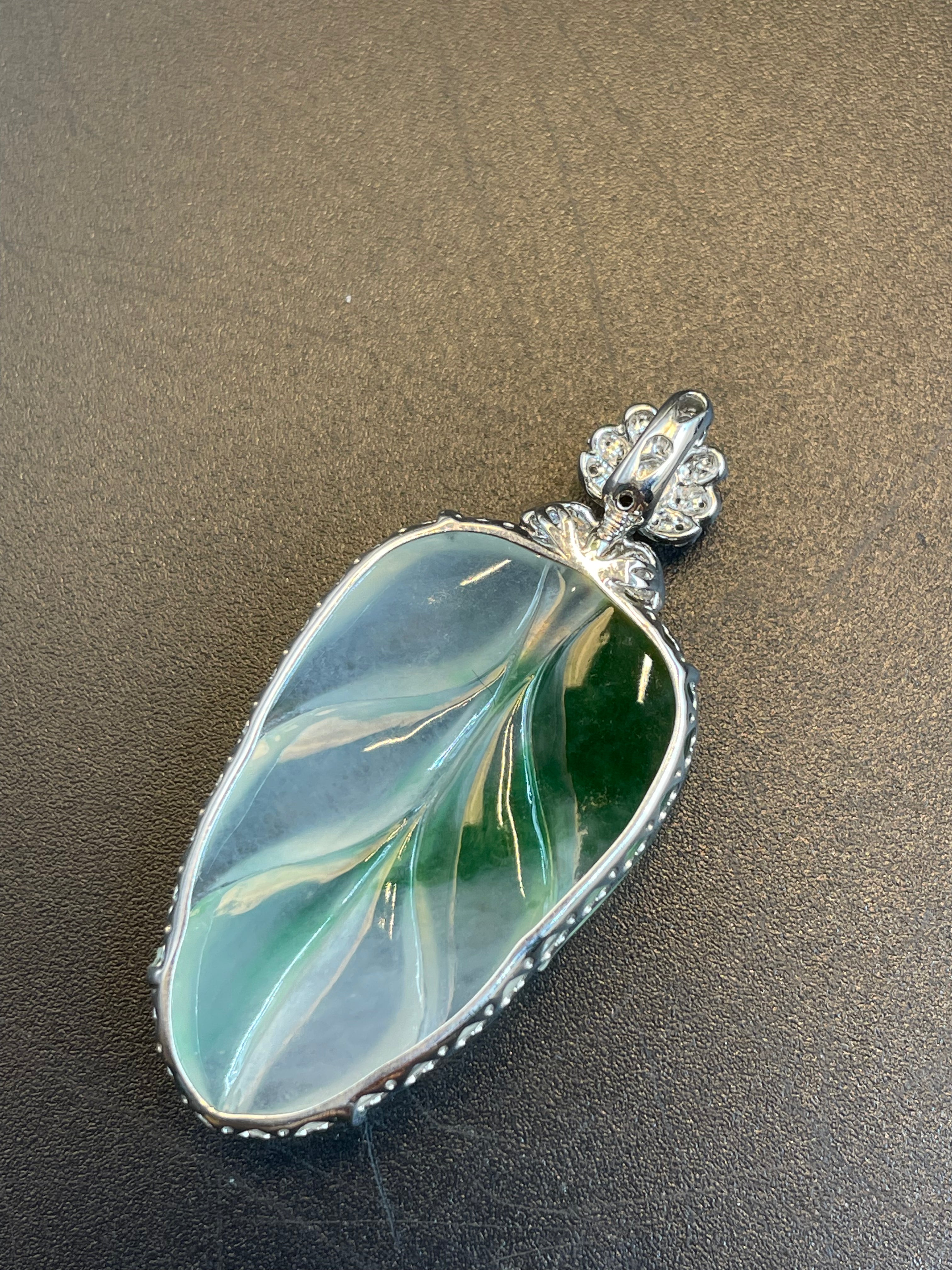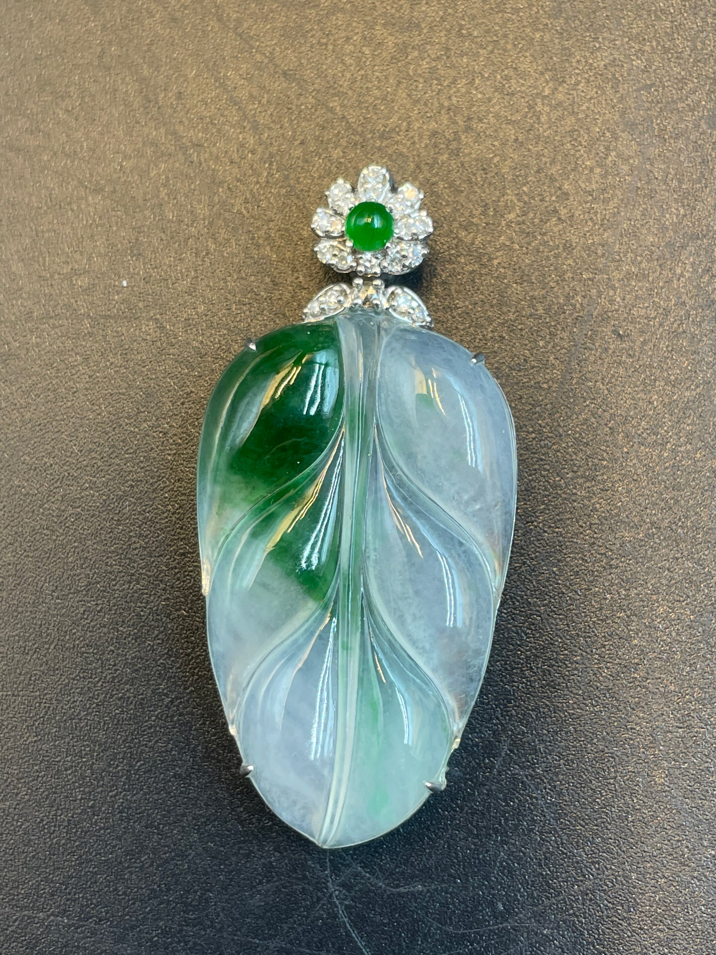 • 緬甸天然翡翠冰飄花葉子/金枝玉葉吊墜