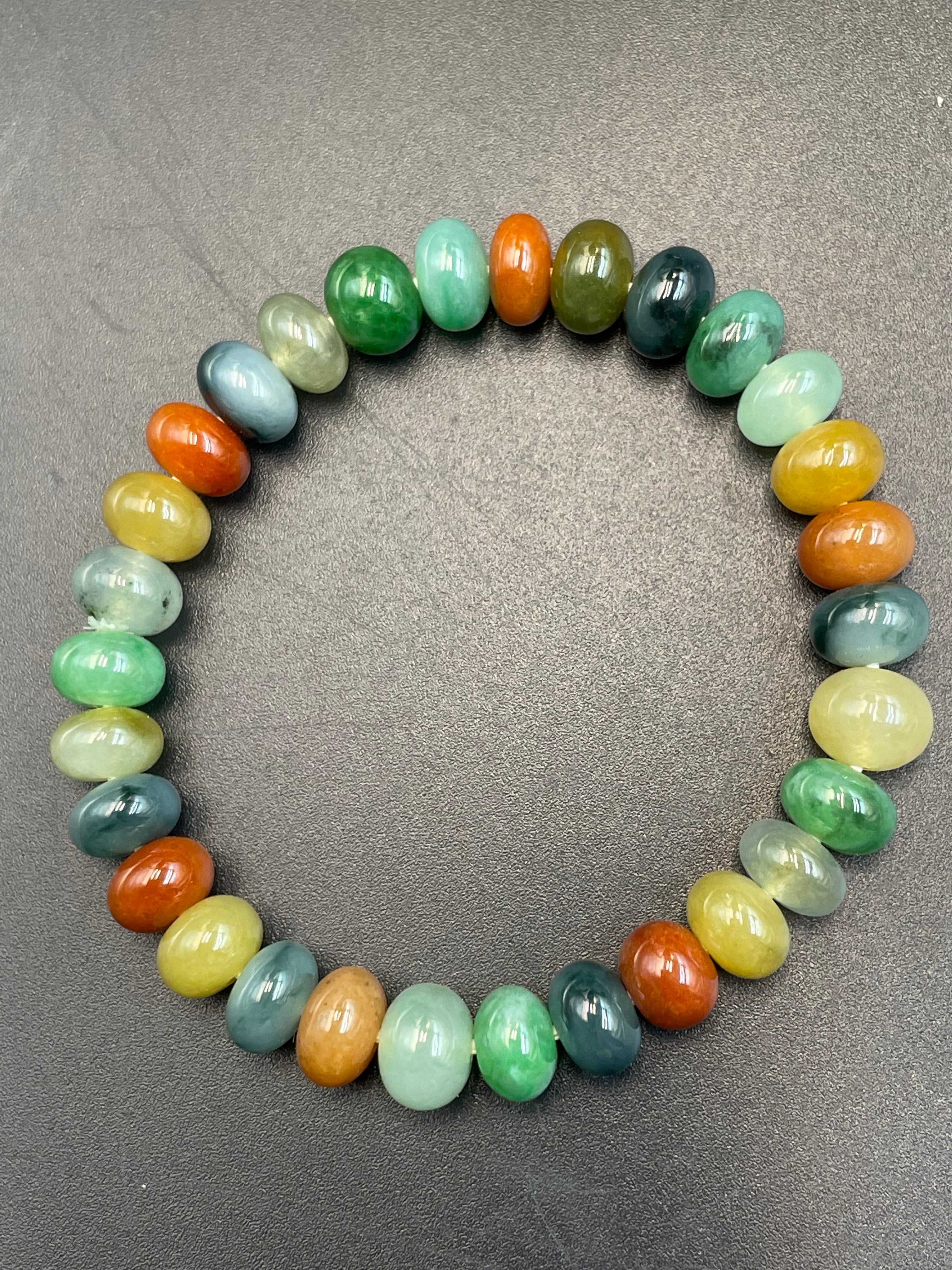 • 緬甸天然翡翠鼓珠多彩手串多宝手链