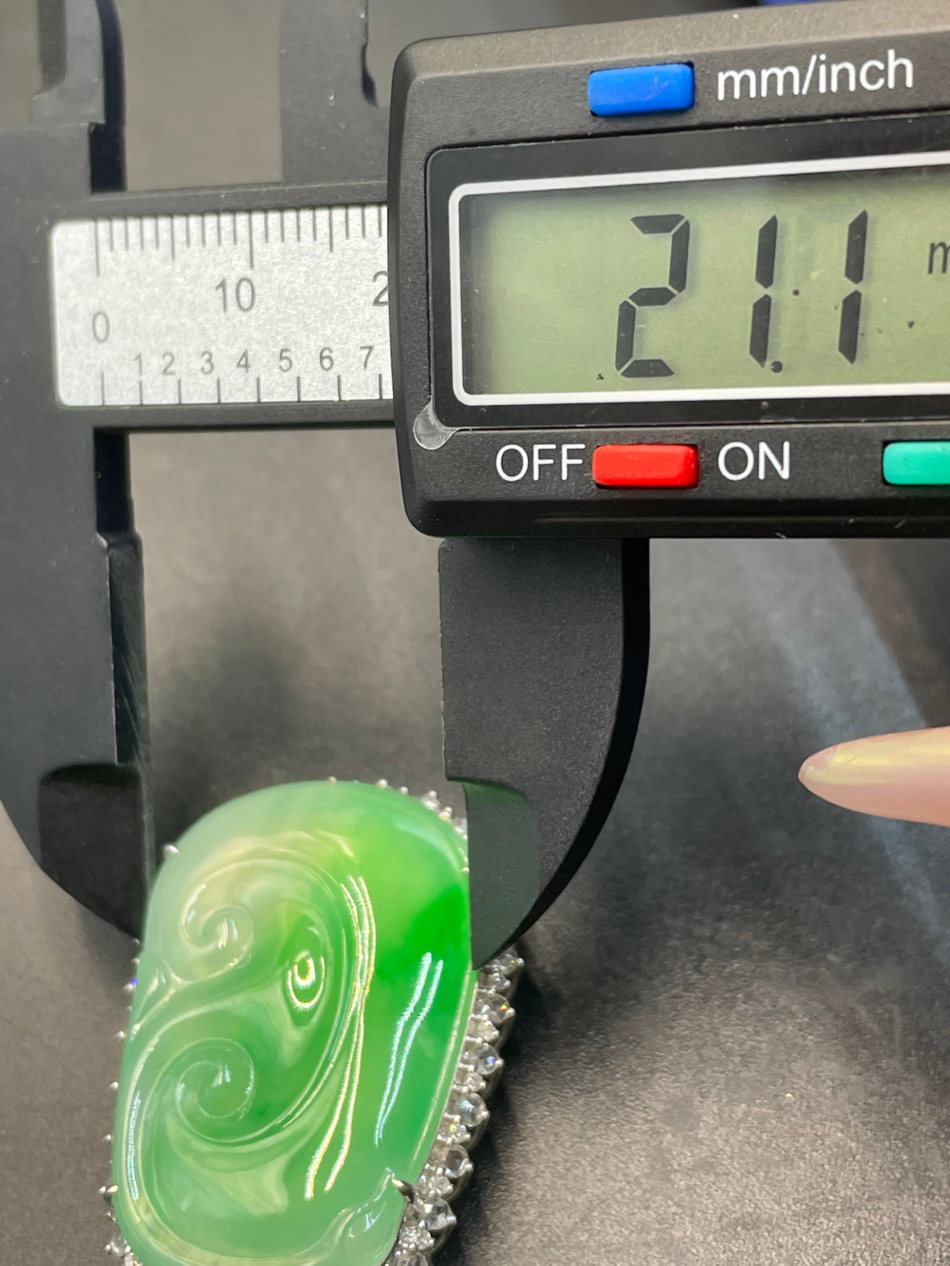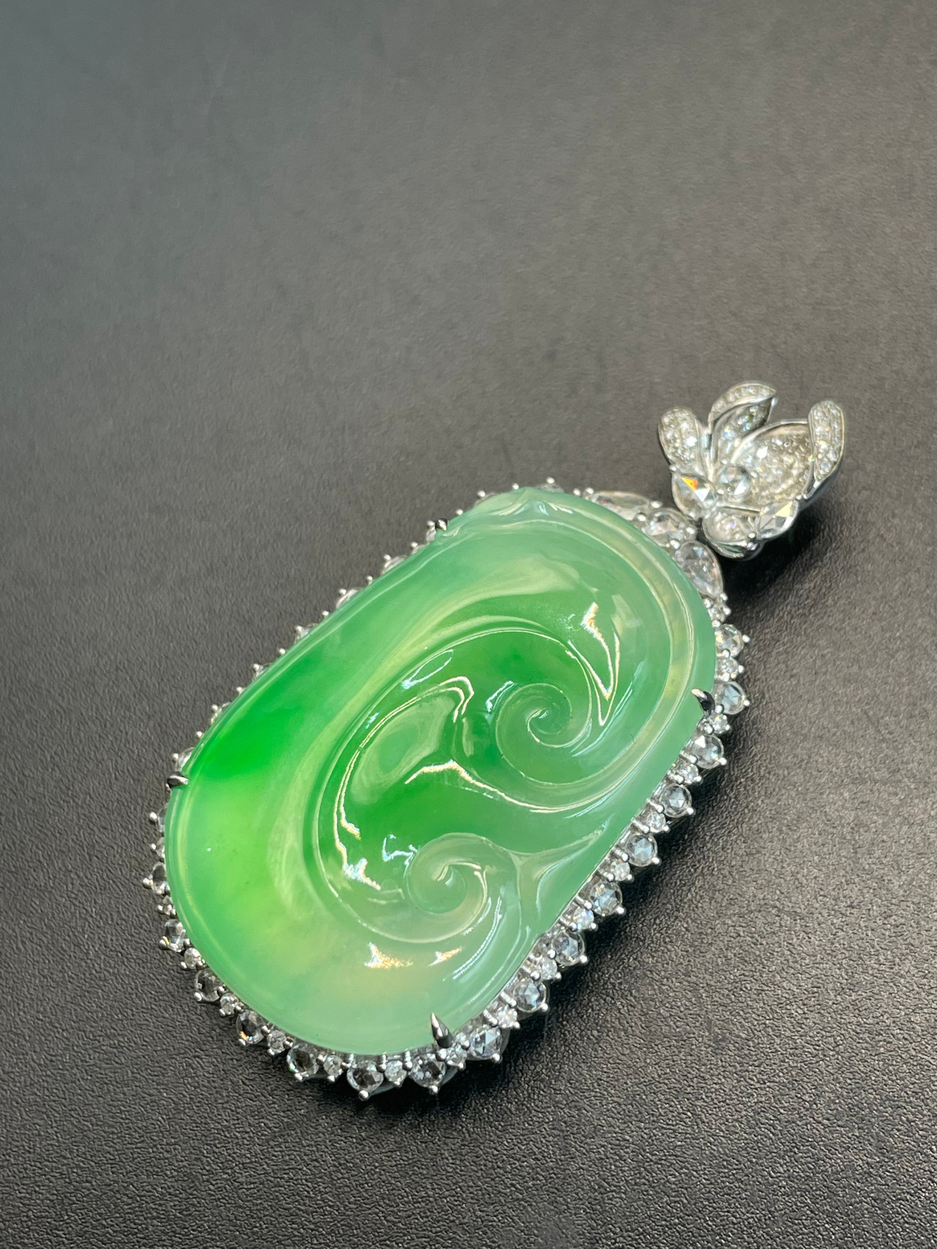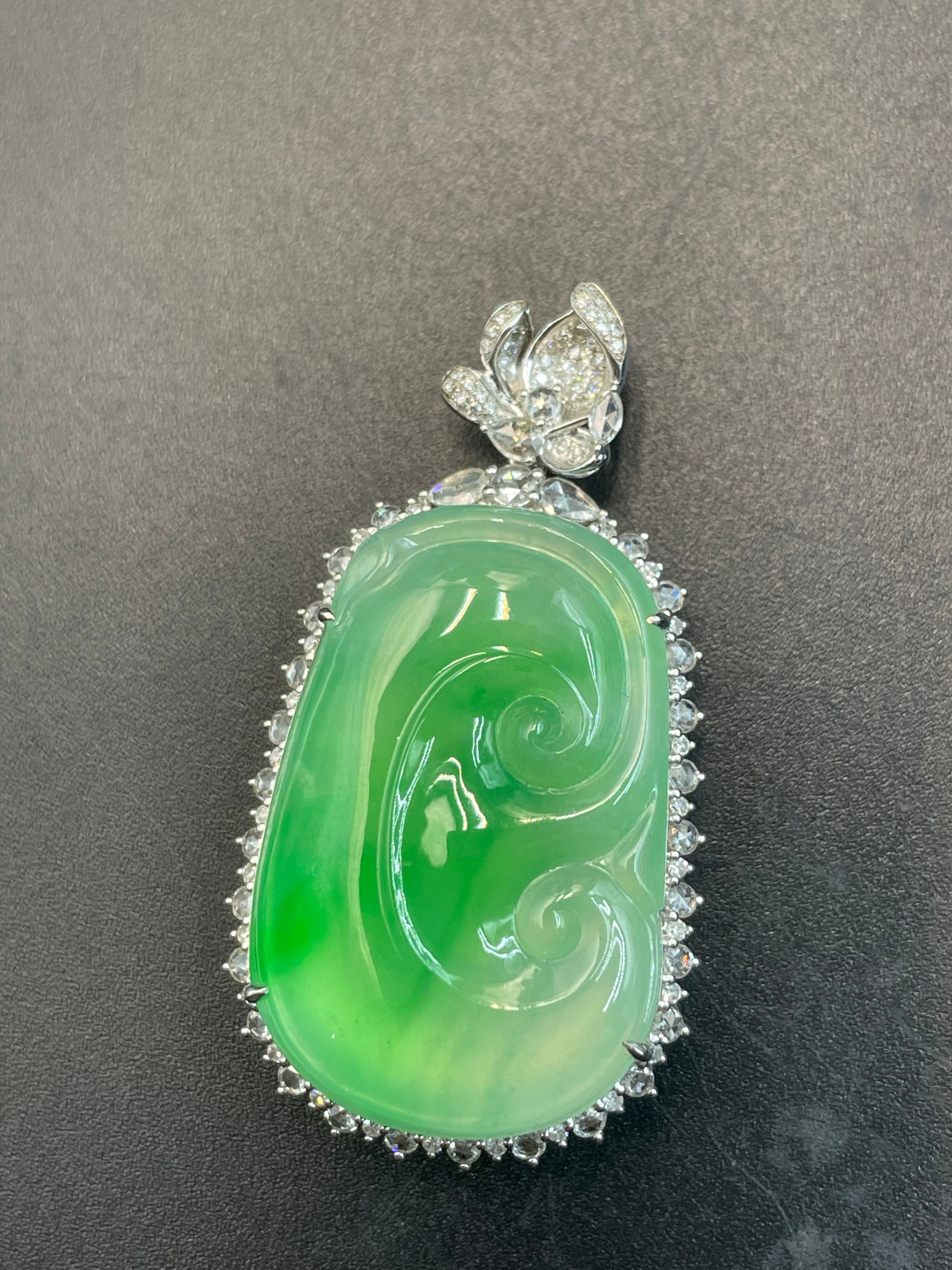 • 緬甸天然翡翠冰晴飄花如意吊墜