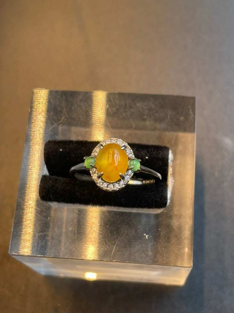 緬甸天然翡翠冰黃/黃翡/冰種蛋面戒指/簡約/設計/禮物 緬甸天然翡翠冰黃/黃翡/冰種蛋面戒指/簡約/設計/禮物