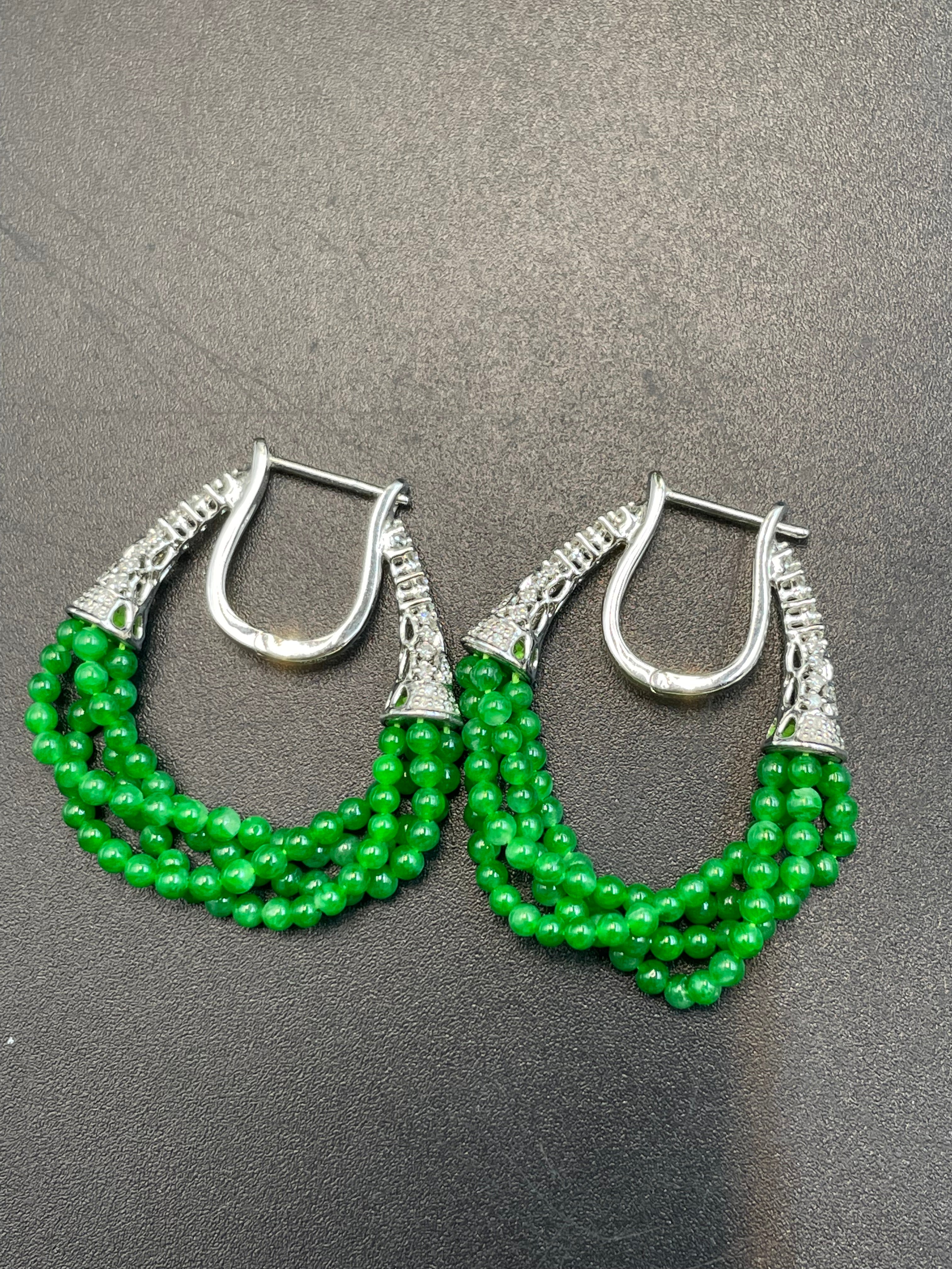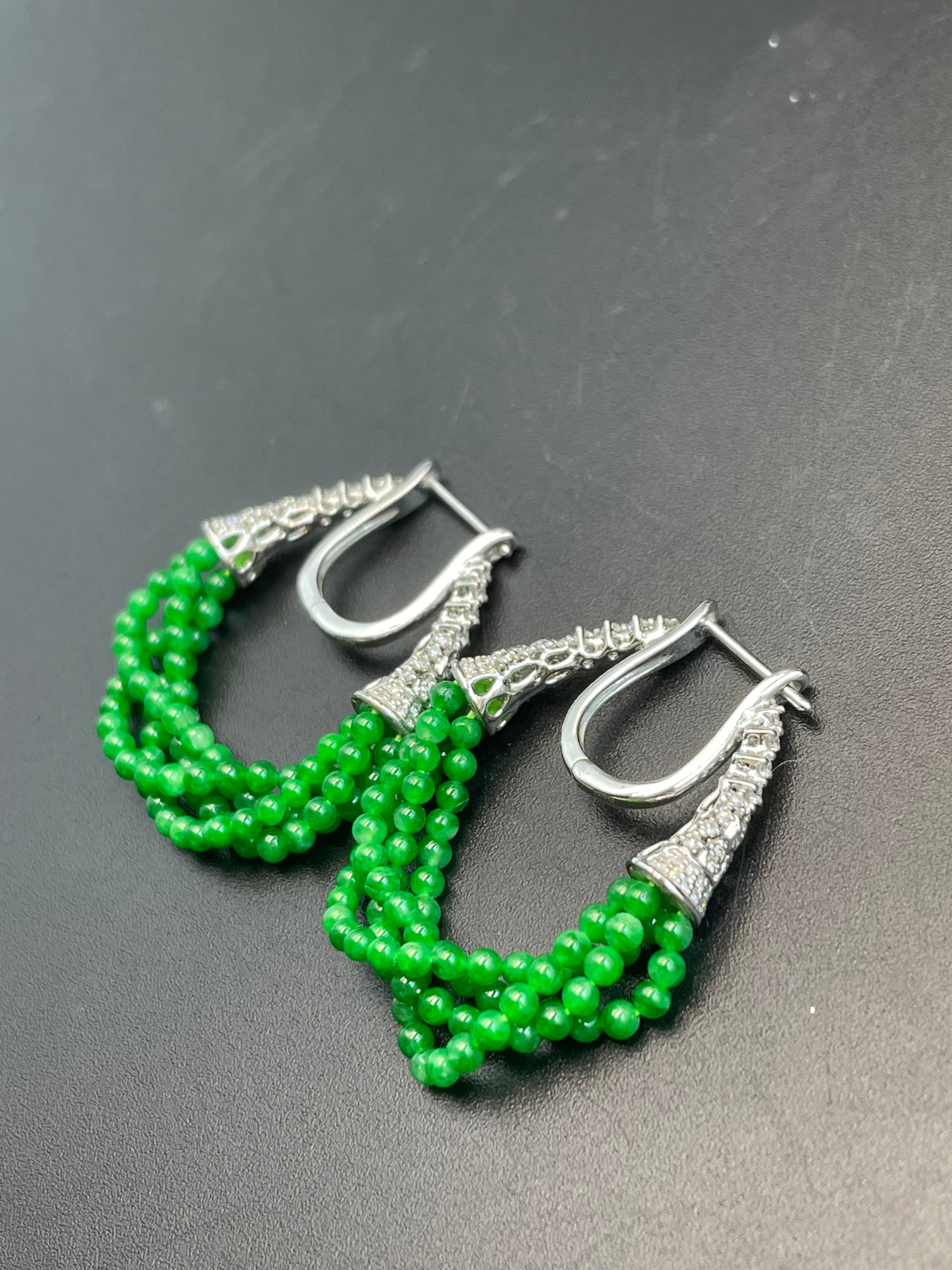 緬甸天然翡翠陽綠小米珠耳環/明星同款/新中式高級感 緬甸天然翡翠陽綠小米珠耳環/明星同款/新中式高級感 緬甸天然翡翠陽綠小米珠耳環/明星同款/新中式高級感