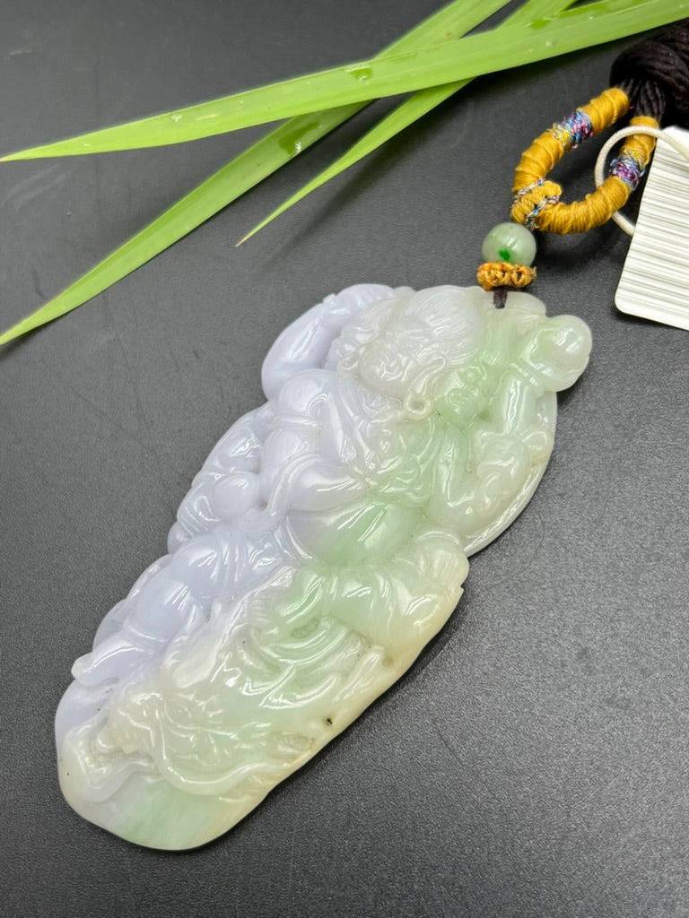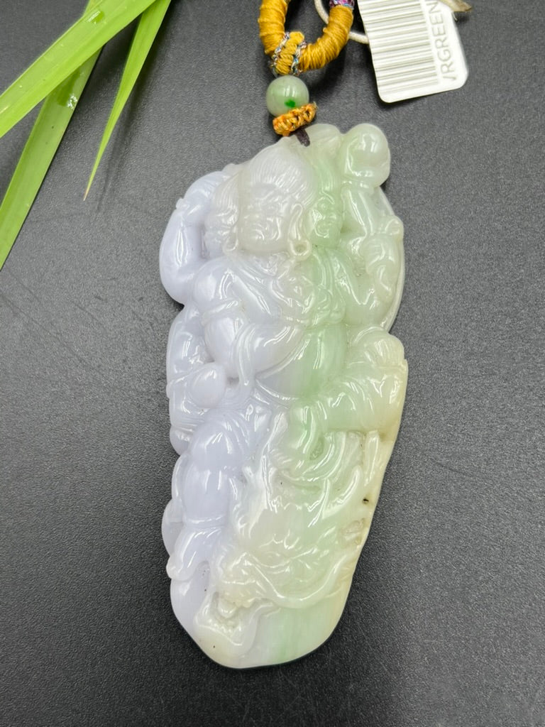 • 緬甸天然翡翠降龍神將吊墜