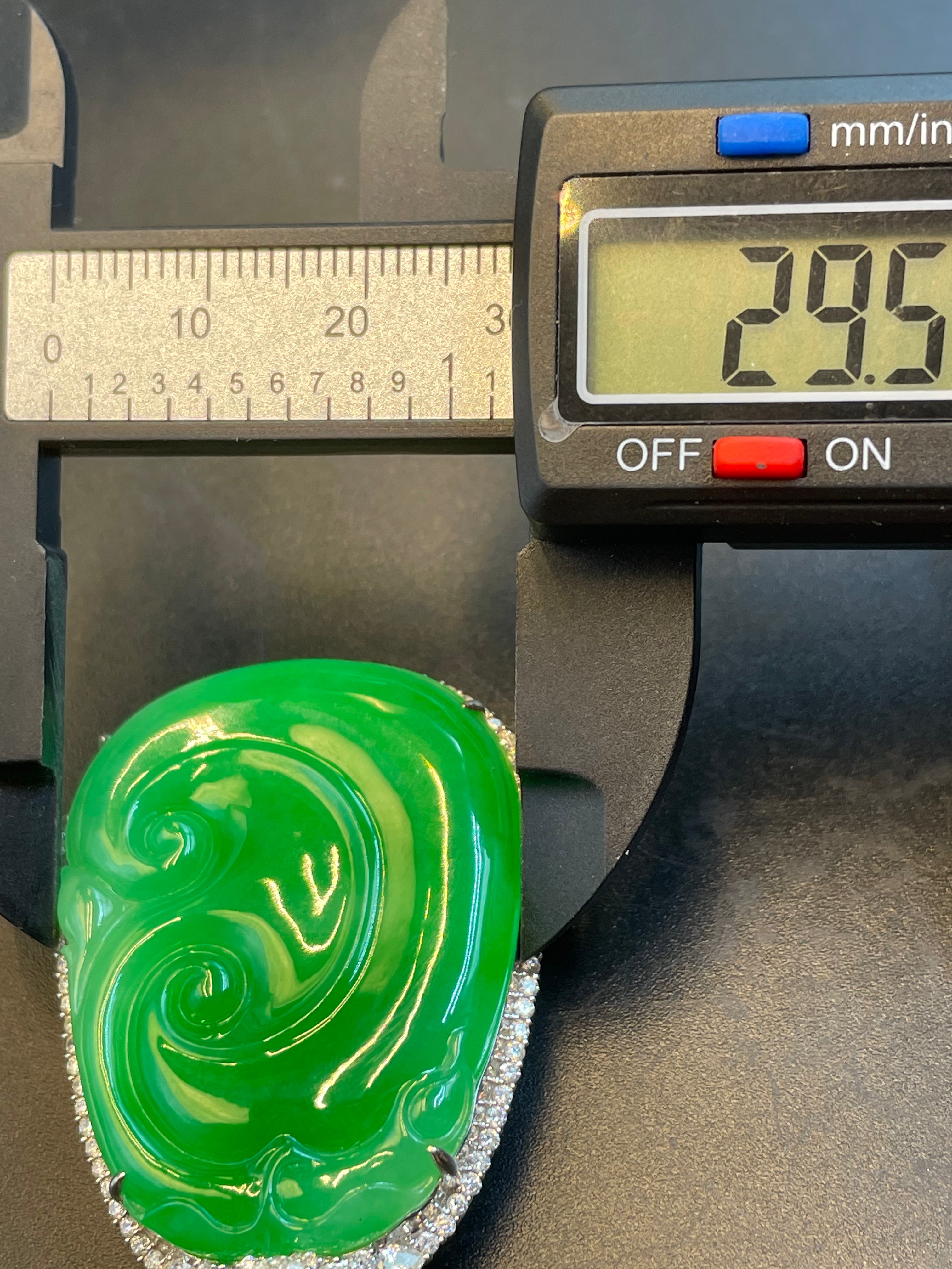 緬甸天然翡翠陽綠如意大吊墜 緬甸天然翡翠陽綠如意大吊墜