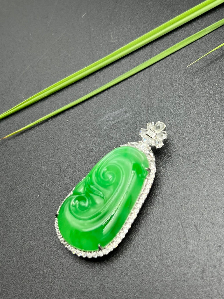 緬甸天然翡翠陽綠葉子吊墜 緬甸天然翡翠陽綠葉子吊墜