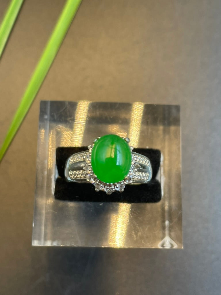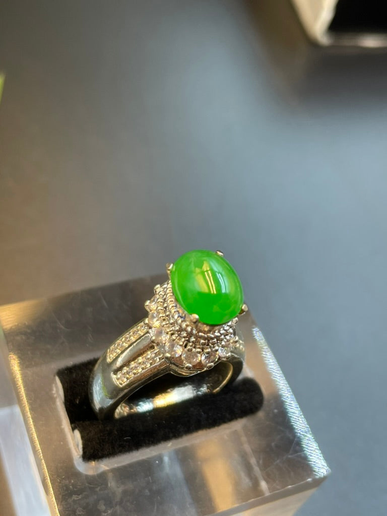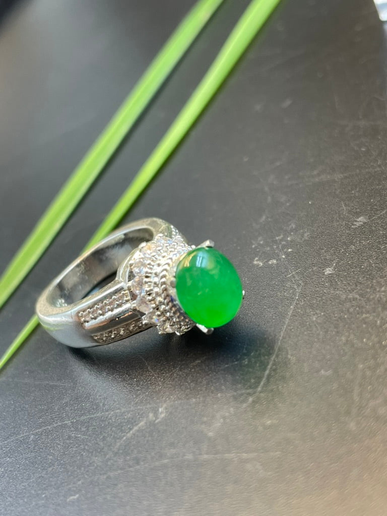 緬甸天然翡翠陽綠蛋面戒指 緬甸天然翡翠陽綠蛋面戒指 緬甸天然翡翠陽綠蛋面戒指