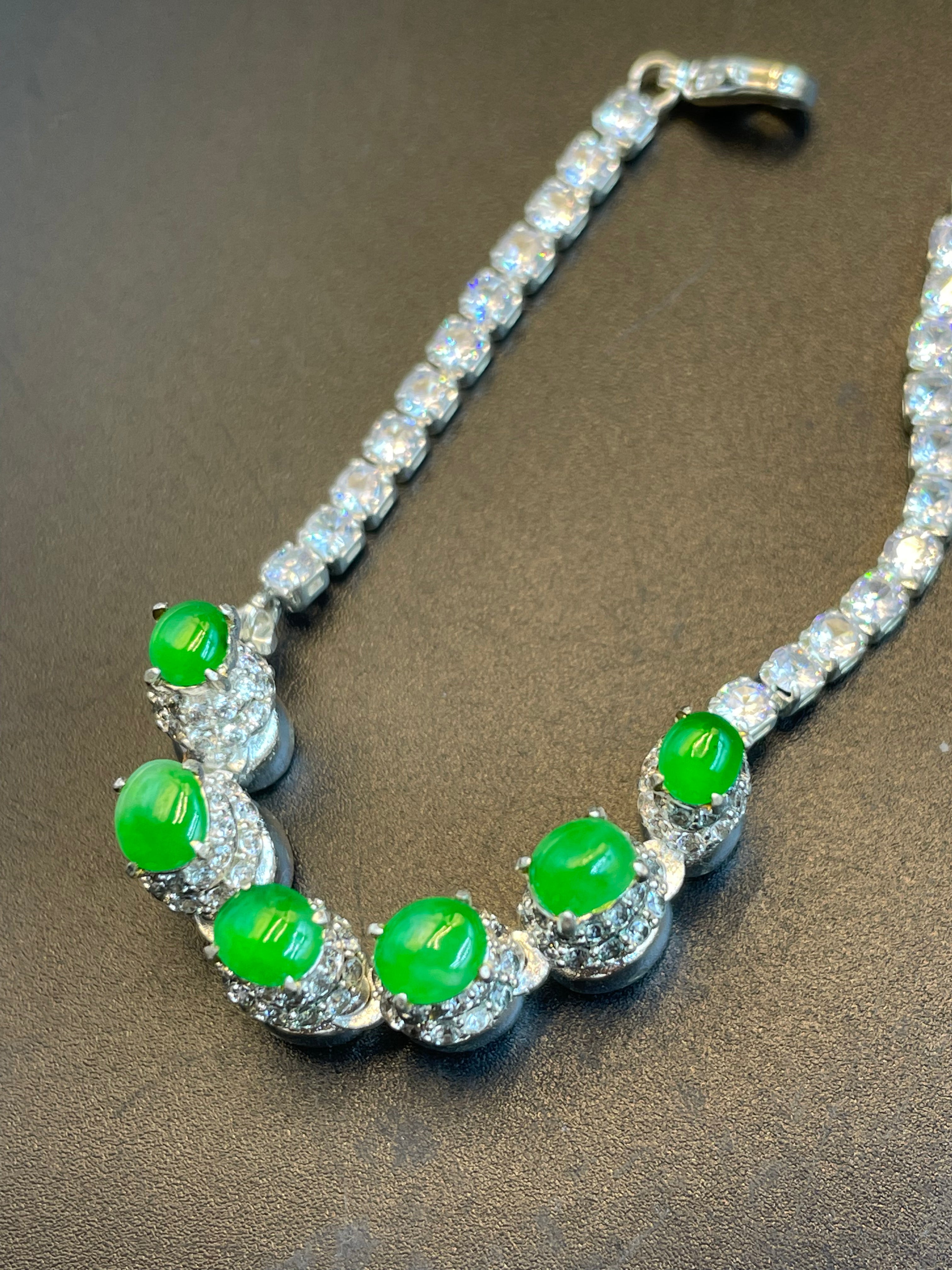 • 緬甸天然翡翠陽綠蛋面手鏈