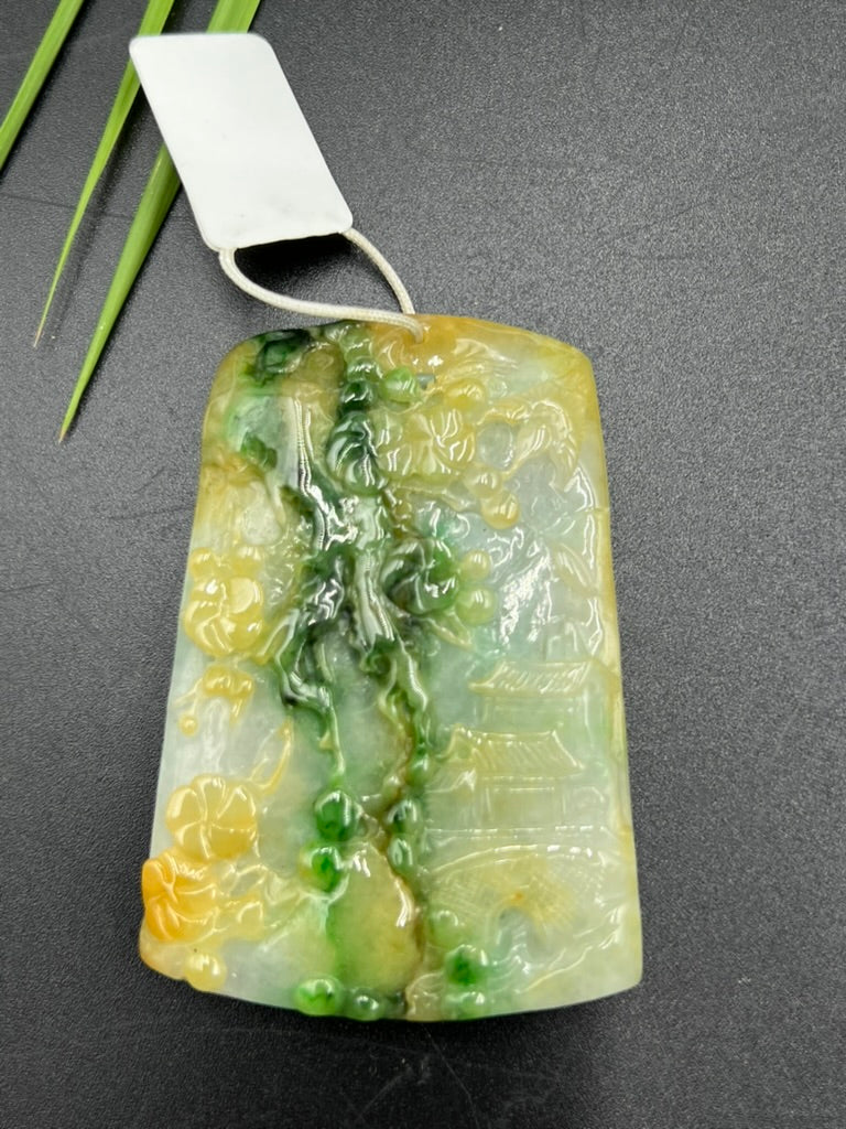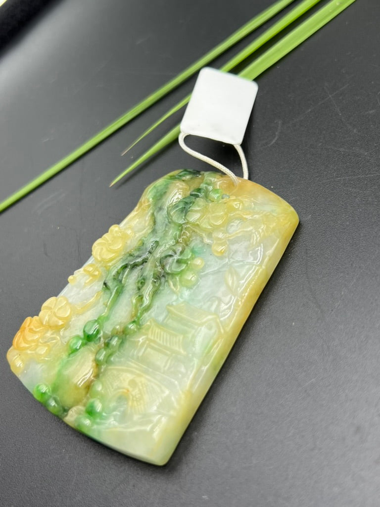 緬甸天然翡翠黃加綠山水牌吊墜 緬甸天然翡翠黃加綠山水牌吊墜 緬甸天然翡翠黃加綠山水牌吊墜