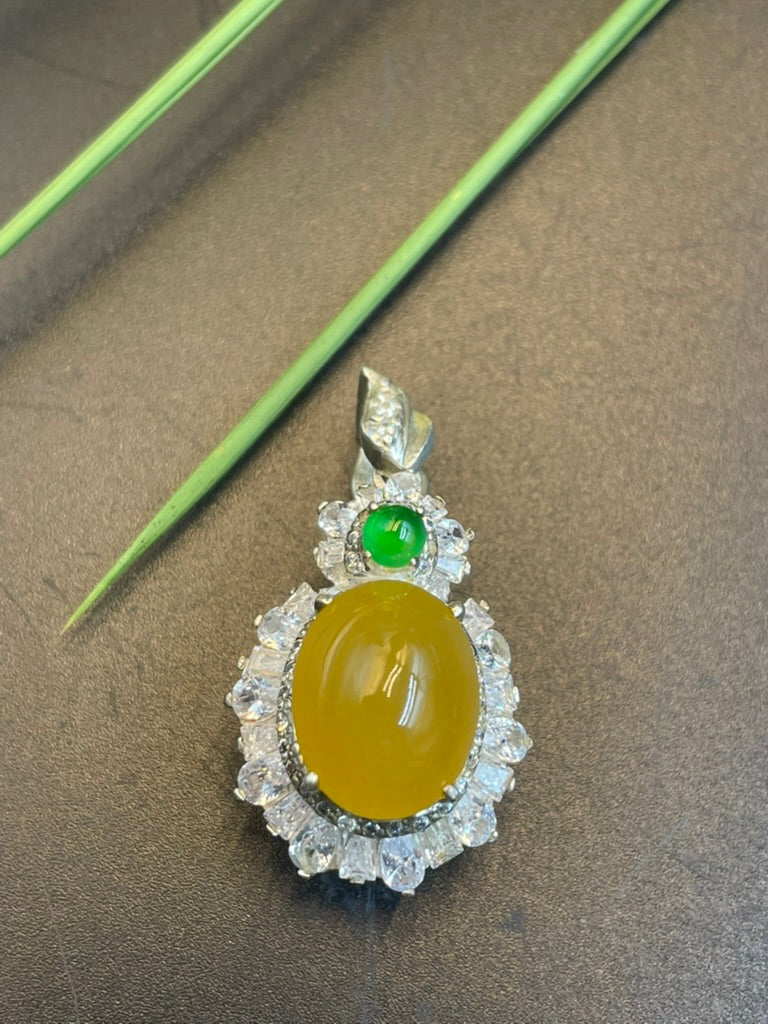 • 緬甸天然翡翠黃翡蛋面吊墜