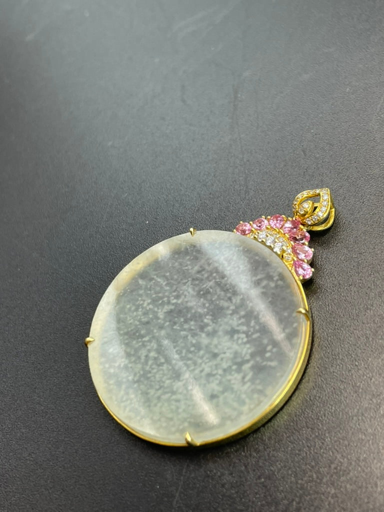 緬甸天然翡翠 冰種雪花棉平安無事圓牌吊墜 緬甸天然翡翠 冰種雪花棉平安無事圓牌吊墜