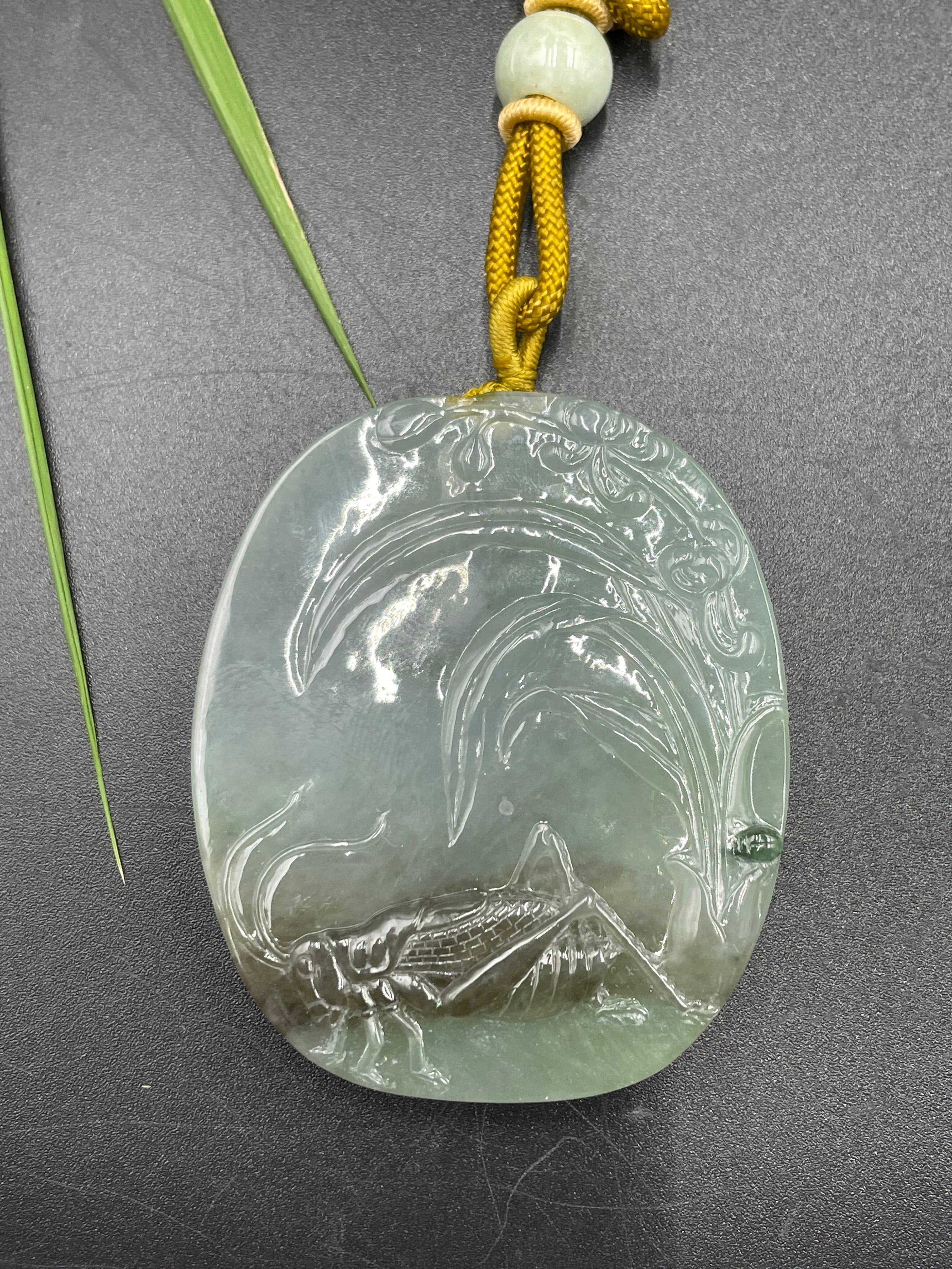 豐收象徵:在傳統文化中,蝗蟲常在秋收後出現在田野中,代表着食物充足和生活富裕,是豐收的象徵。翡翠蝗蟲的出現,預示着秋收的成功,寓意着五谷豐登,百姓安居樂業。