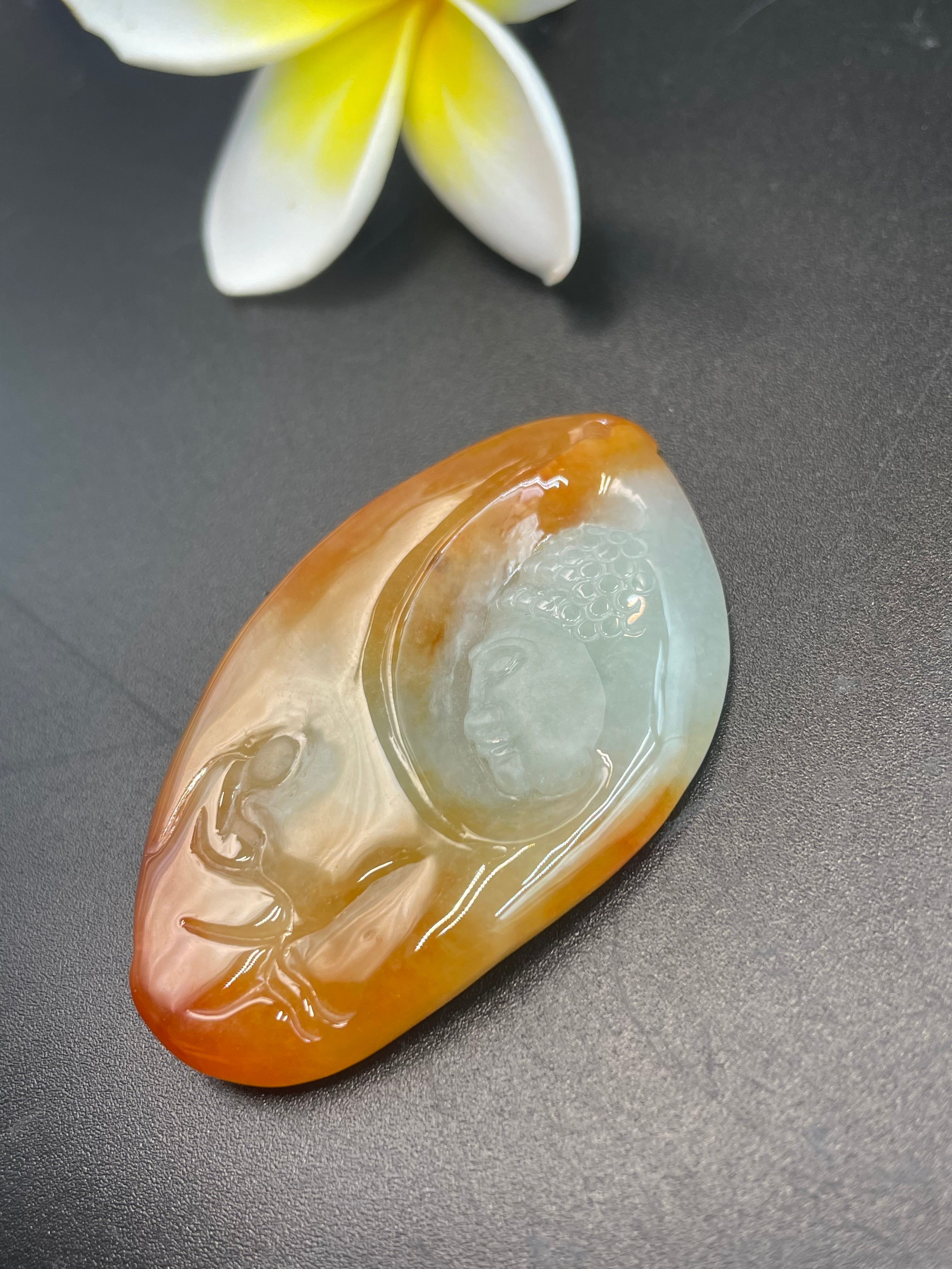 翡翠的棉紋可視爲 “雲中仙踪”,色帶可視爲 “菩薩妙相”,寓意 “煩惱即菩提”,當下即是圓滿。